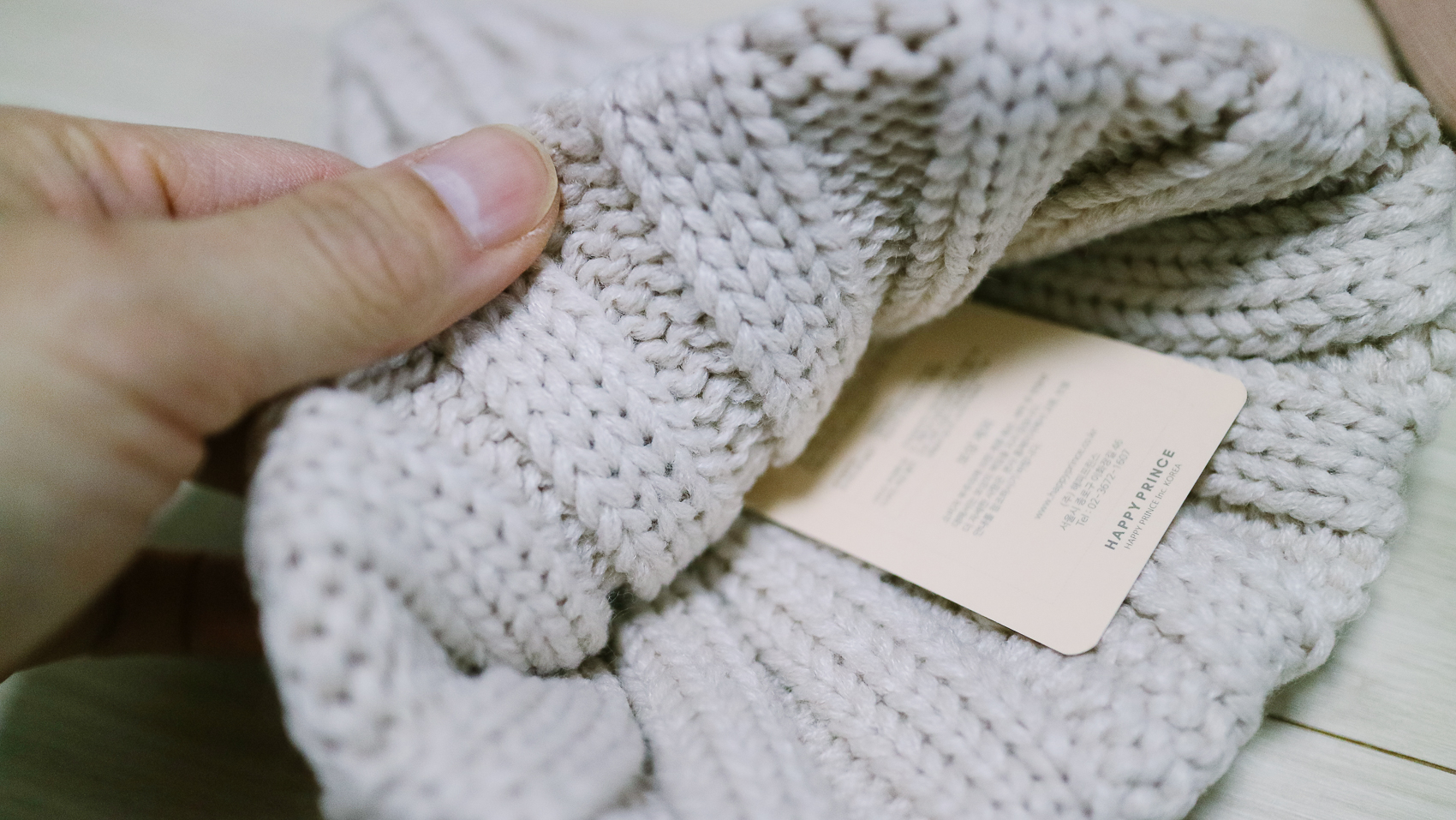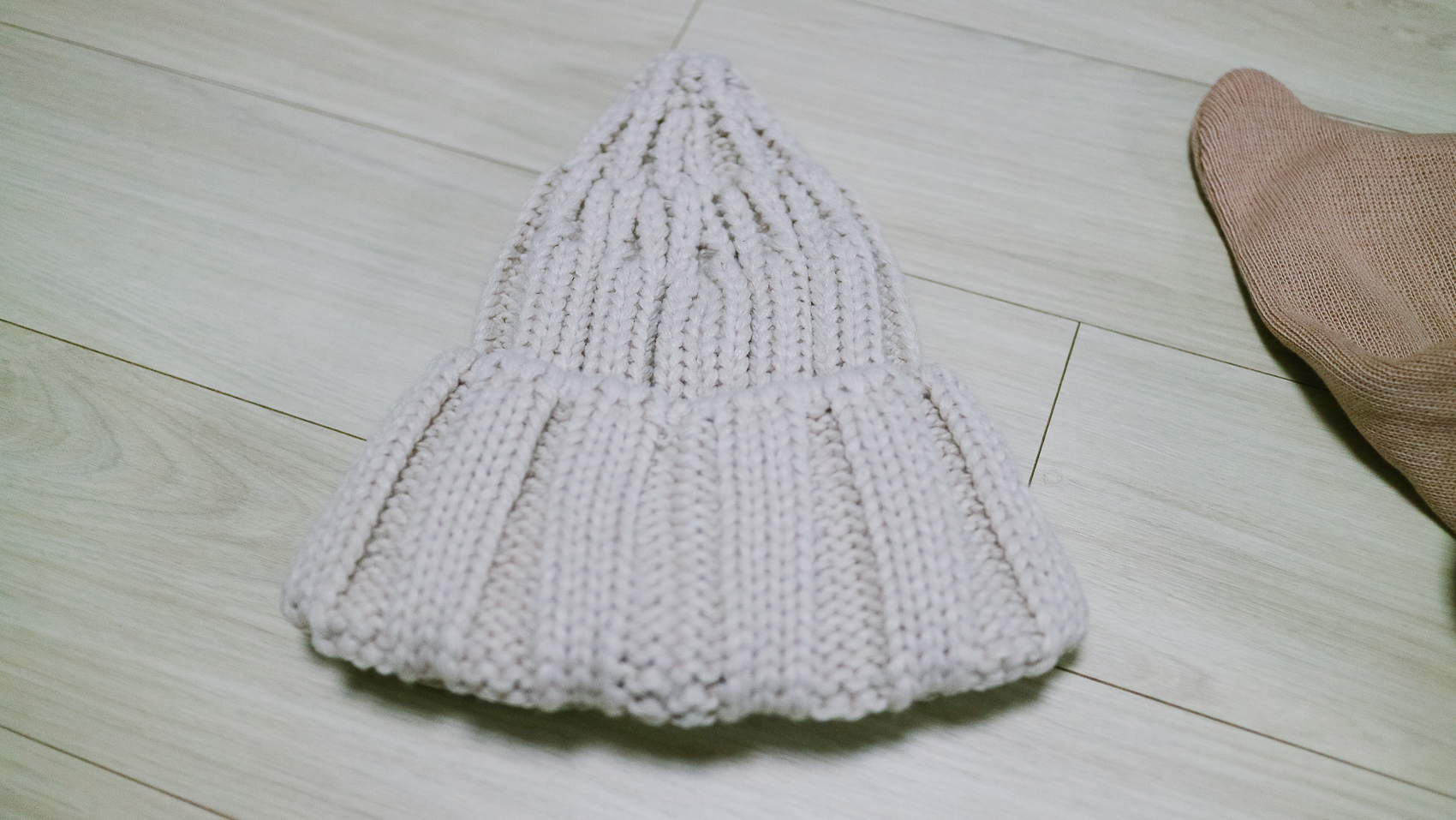 다음은 내가 가장 좋아하는 샌드 니트 아기 비니-밀크베이지! 한 겨울철에 굉장히 예쁜 연출이 가능한 비니이다. 두께감은 구매한 3가지 중 가장 두꺼운 편이다.