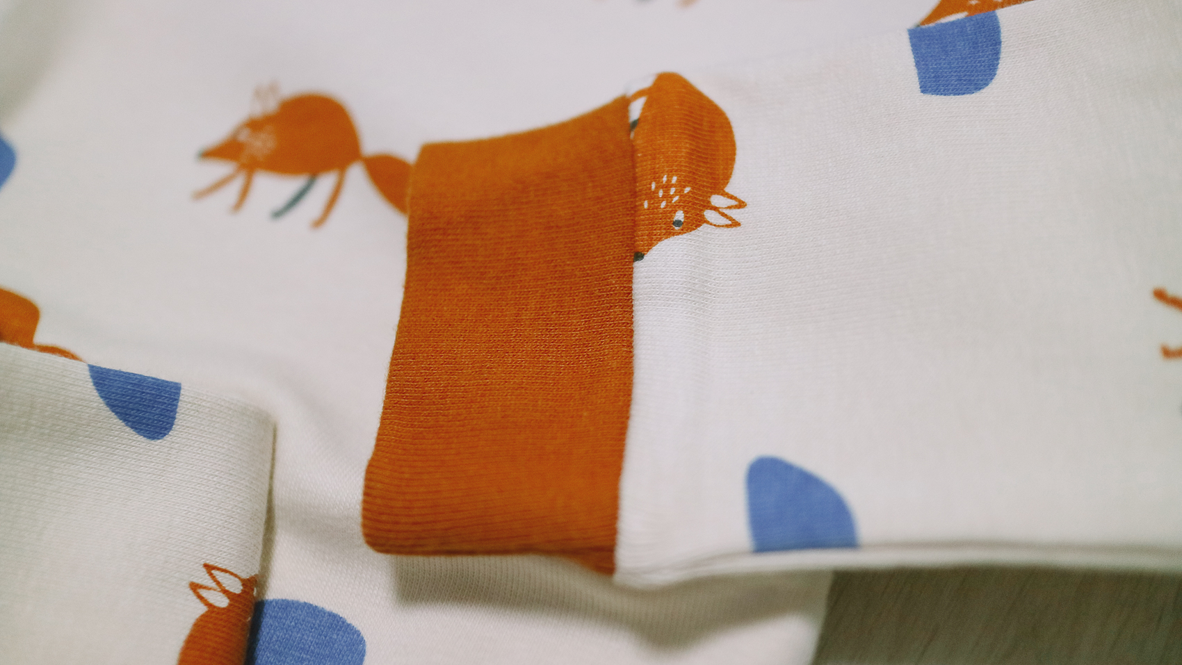 밑단, 소매 부분은 시보리 처리가 되어 있어 사이즈가 크더라도 잡아주며, 아이 성장 정도에 따라 한두 번 접어 올려 편안하게 입힐 수 있다.