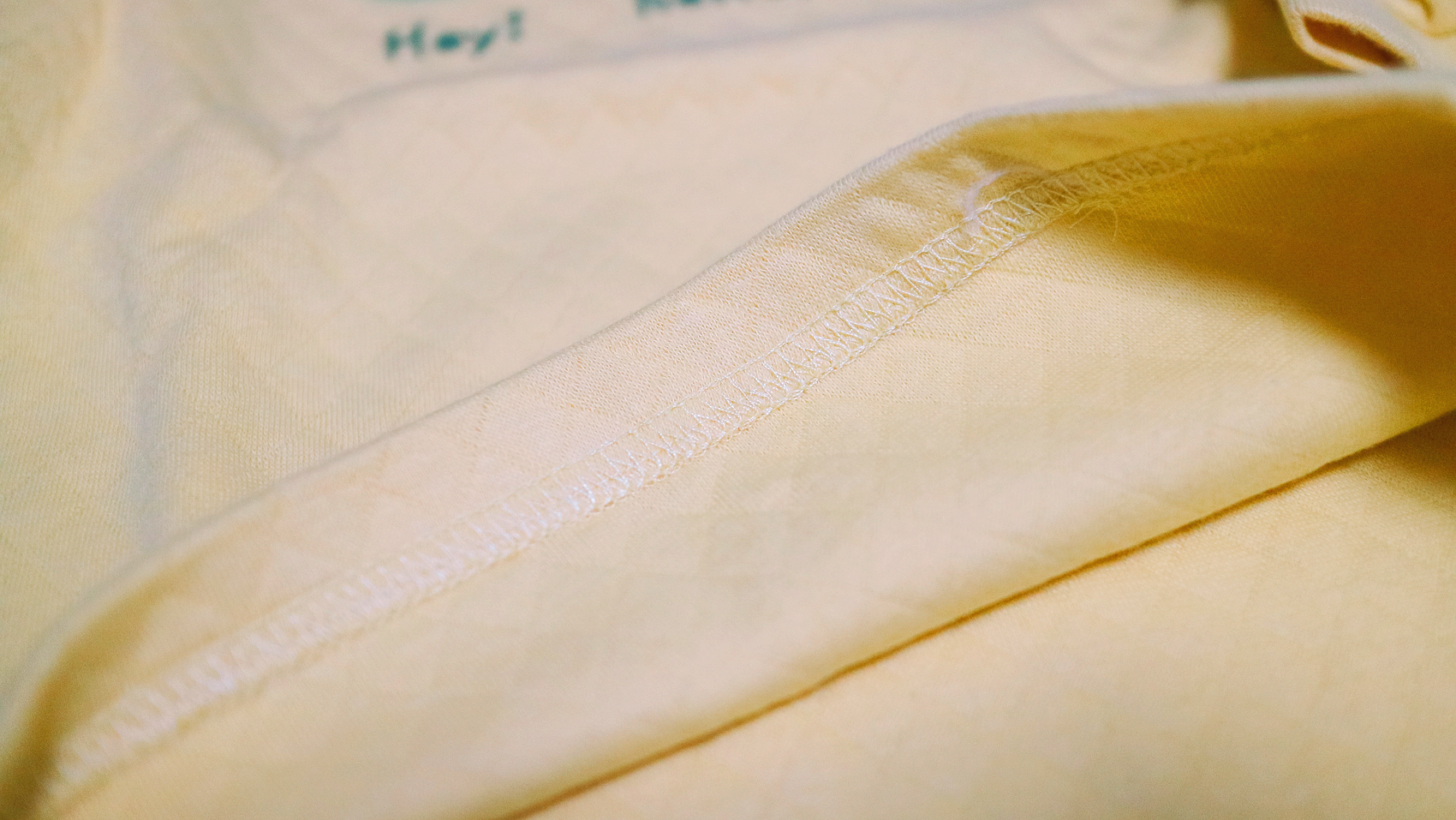 소매와 밑단은 시보리 처리가 되어 있어 한창 성장기인 아기들에게 롤업 해서 입히기 편리한 내의이다. 꼼꼼하게 끝단 마감처리가 잘 되어 있는 겨울에 입히기 좋은 도톰한 보온 내의다.