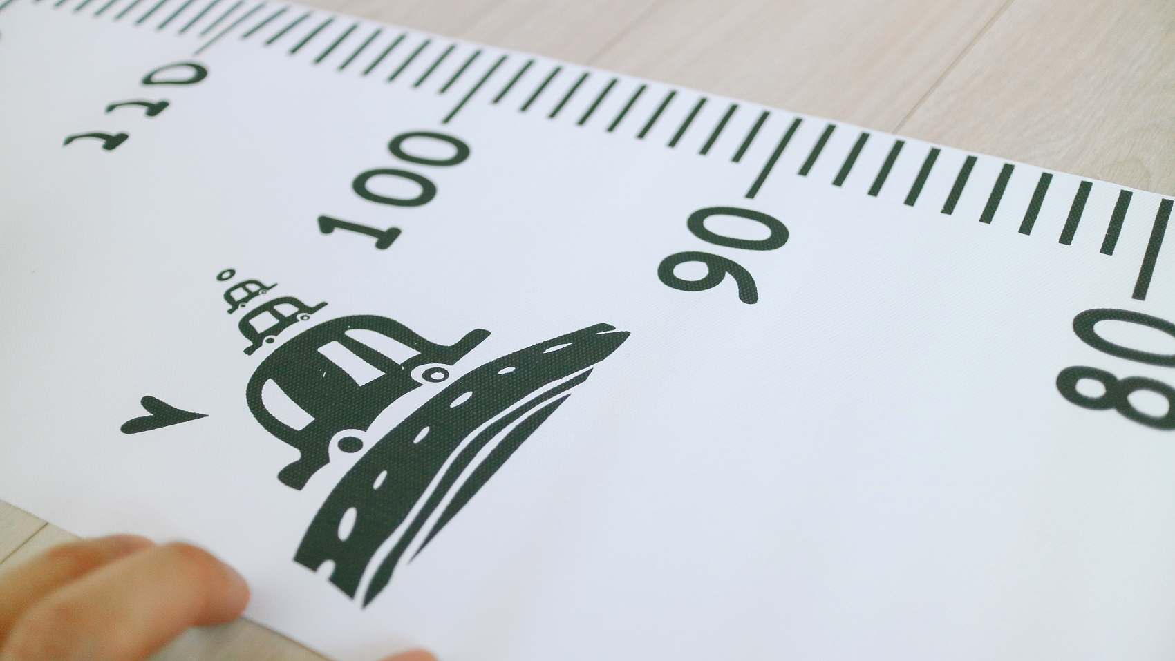 캔버스 천으로 되어 있어 찢어짐 없이 오랜기간동안 사용할 수 있고, 벽걸이 설치 시 성인, 영유아까지 다양한 연령층이 키재기를 사용할 수 있다. 신생아, 아기 때는 바닥면에 펼쳐놓고, 아기를 뉘어 측정해 주면 된다.
