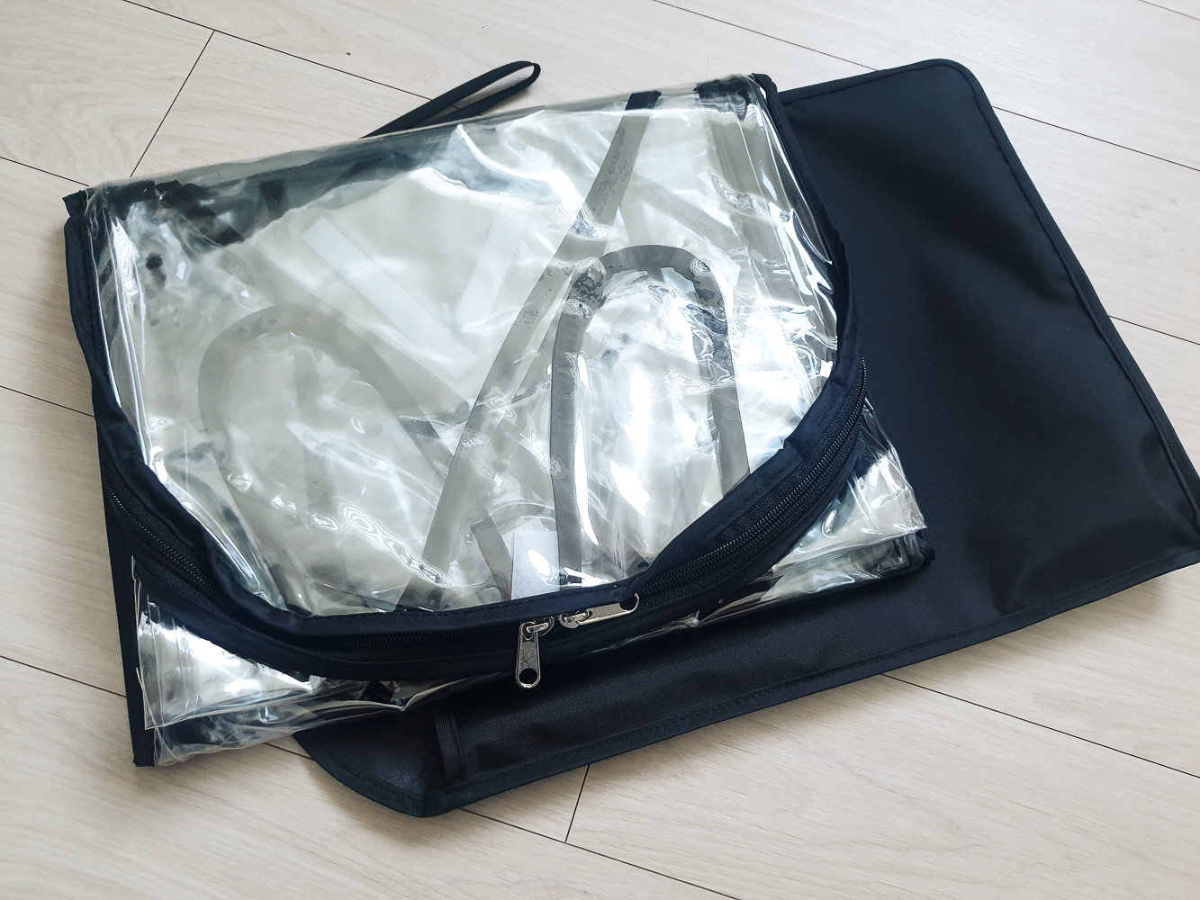 다행히 접이식 휴대용 유모차에 호환되는 레인커버를 찾아서 구매하게 되었다. 제품은 파우치까지 함께 동봉되어 있는 구성이었다.