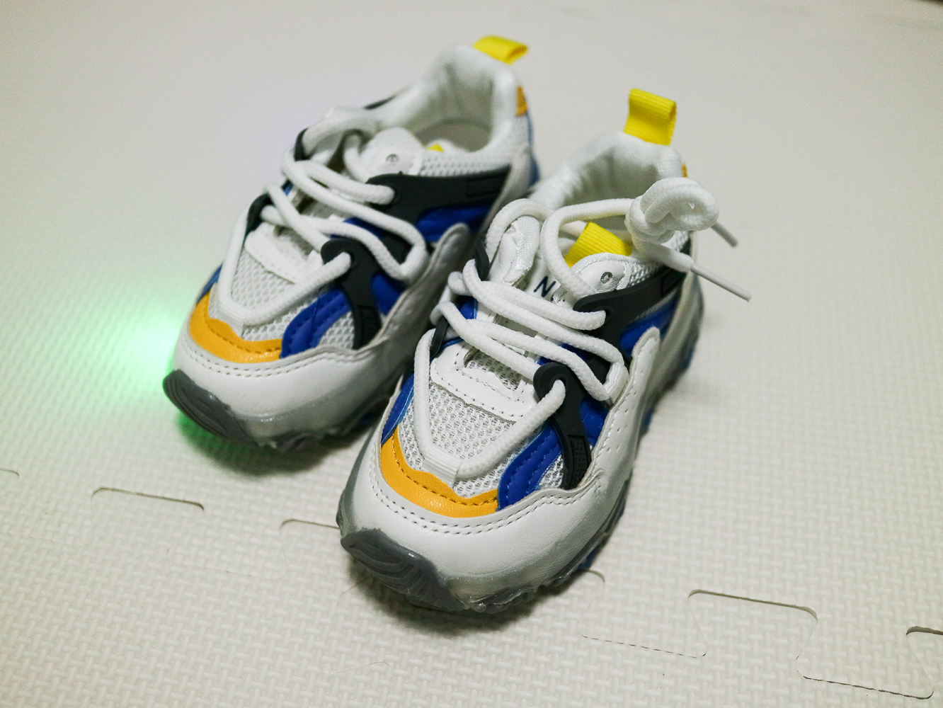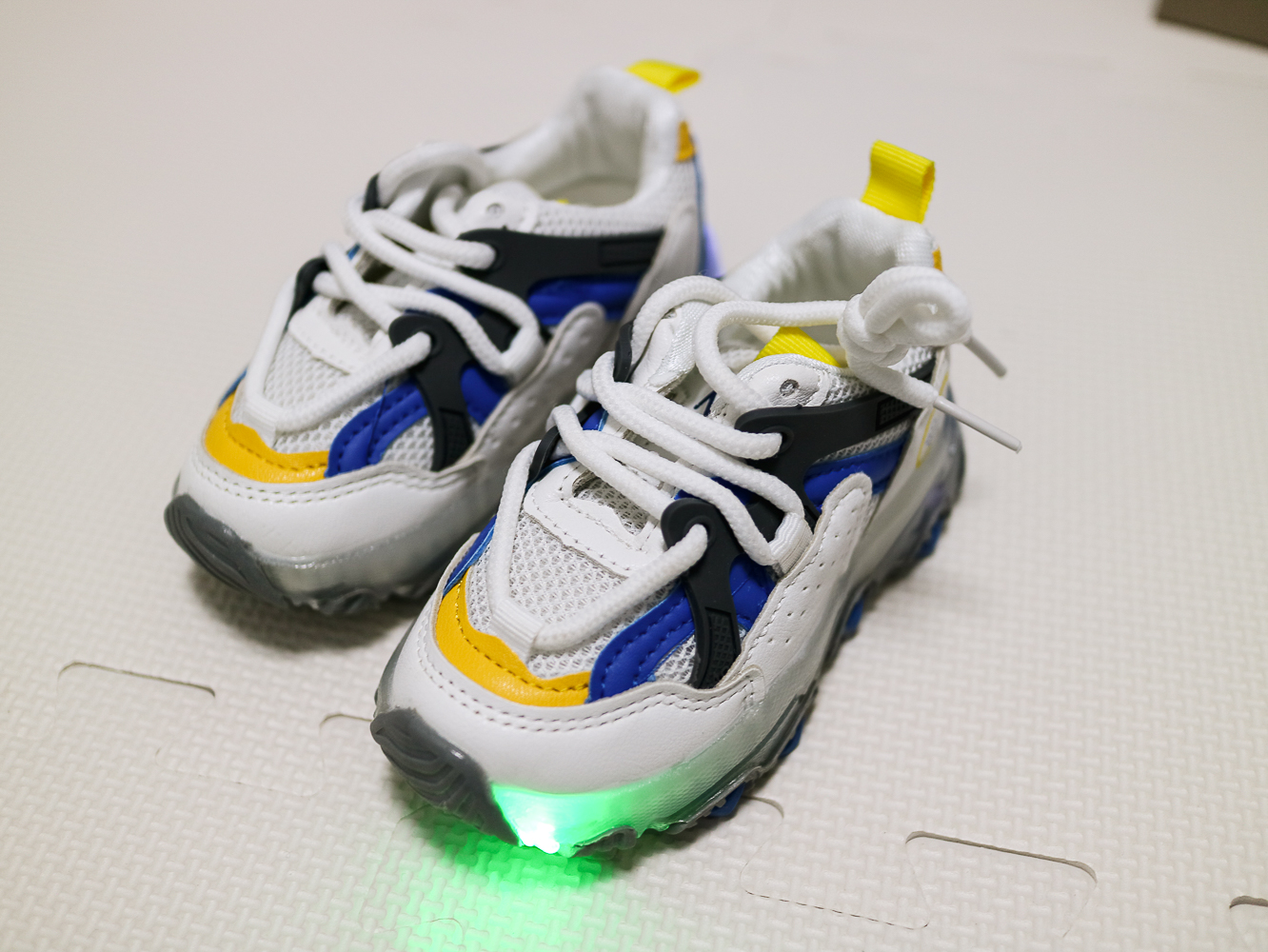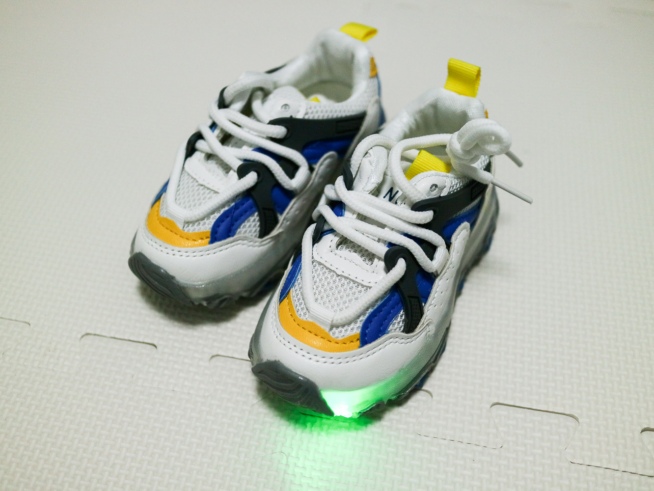 제품은 성인의 어글리 슈즈처럼 밑 쿠셔닝이 굉장히 넉넉한 편이며 걸을 때마다 반짝반짝 LED 불이 들어온다.