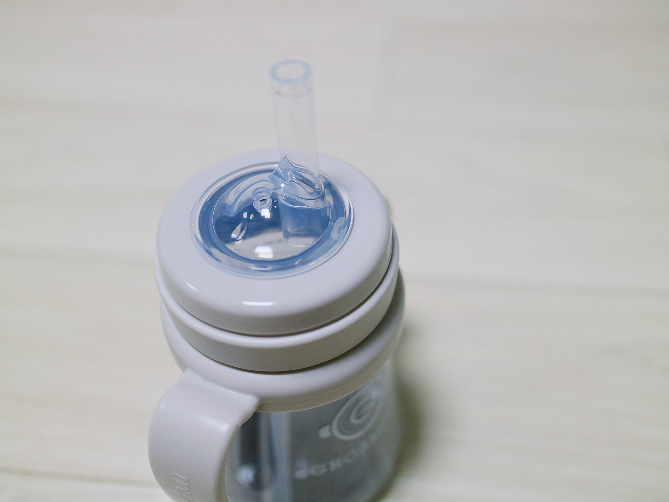 첫 번째로 스파우트컵처럼 누워서 사용-아기가 빨대컵을 처음 사용할 때 누워서 먹거나 젖병 수유를 중단할 때 쓰인다.