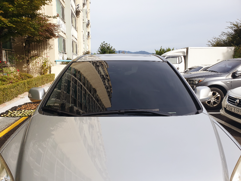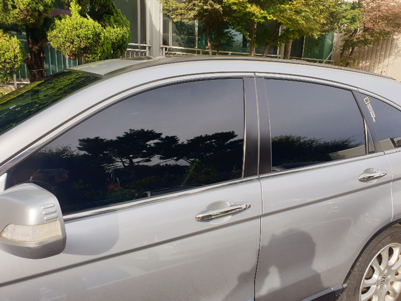 측면도 역시나 깔끔한 모습. 전면에서 빛이 들어오기 때문에 차 뒤로 갈수록 더 어두워서 뒷좌석 라인은 잘 안보이는 것이 일반적이다. 선팅 전에 전면부는 거의 선팅이 없었기 때문에 야간 운전 시 브레이크 등의 빛반사도 셌었고, 내가 라식을 했던지라 빛 번짐도 약간 있었는데, 어느 정도 잡아주게 되어 야간 운전 시 오히려 편안했다.