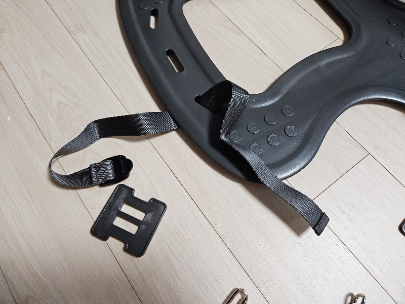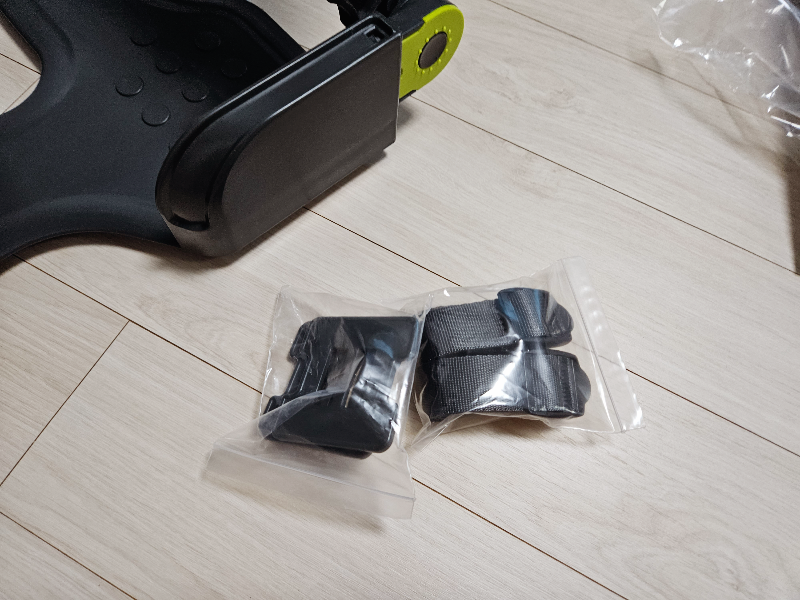 제품은 카시트 밑에 놓고 카시트를 그대로 올려놓는 형태로, 뒤에 고정클립을 설치하여 시트 뒷자리에 넘겨서 2차적으로 안전하게 고정하는 것을 권장한다. 일단 고정 클립을 순차적으로 조립해 준다.