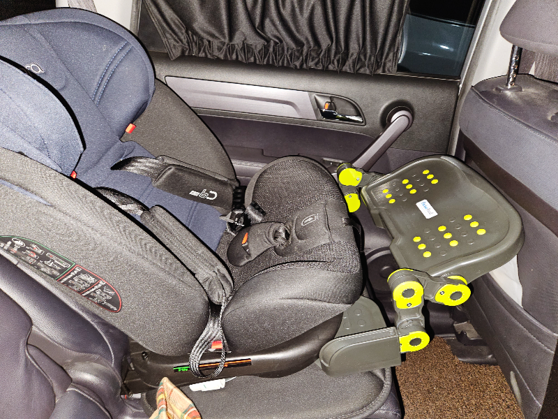 짜잔! 완성된 베베루트 링크형 카시트 발판! 카시트 높낮이 및 각도에 알맞게 발판을 설치한 모습이다. 일단 아들이 탑승전에 감으로 대략적이게 설치한 것이라 정확한 각도 조절은 아이를 카시트에 태운 뒤 교정하는 것을 권장한다.