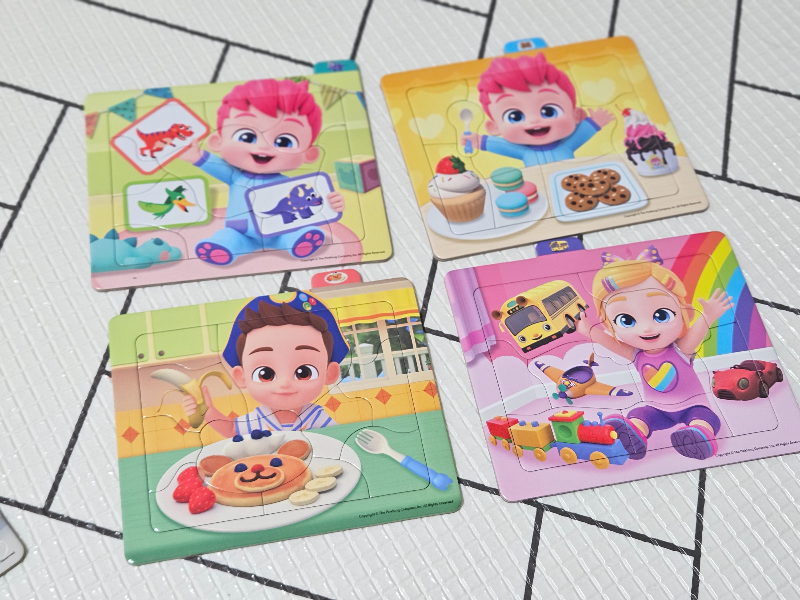 총 12개 퍼즐 타입이 있으며, 난이도는 5조각, 6조각, 7조각, 8조각, 10조각, 11조각, 12조각 있어 단계별로 도전할 수 있어 차근차근 자신감을 길러줄 수 있다.
