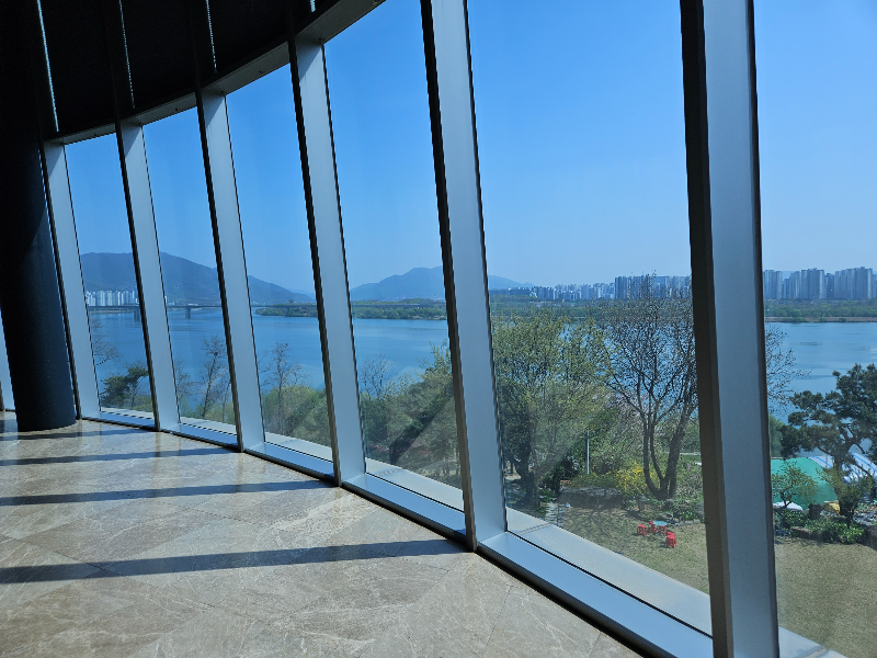 통유리 너머로 보이는 한강뷰. 정말로 탁 트인 뷰로 보이는 풍경은 마음을 뻥 뚫어지게 하였다. 비록 생각했던 화려한 포토존에서 사진은 못 찍었지만 풍경과 날씨가 좋아 또 방문해도 좋은 공룡 박물관이다.