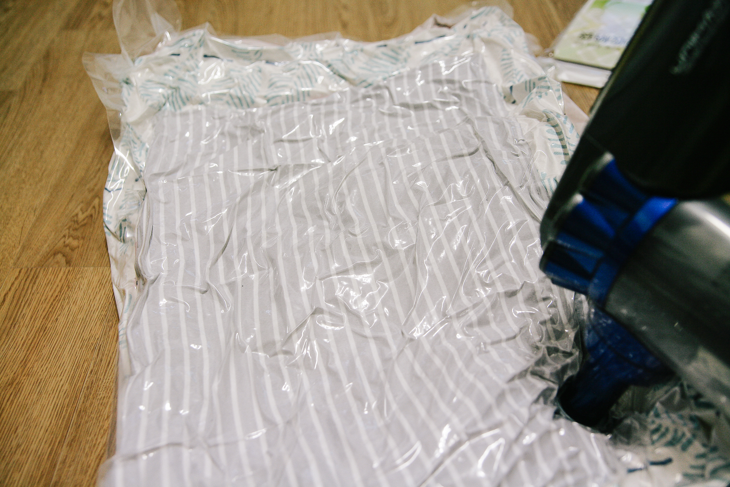차마 펌프로는 하지 못하고, 청소기로 흡입하여 쉽고 빠르게 공기를 빼내어 압축상태로 만든다.