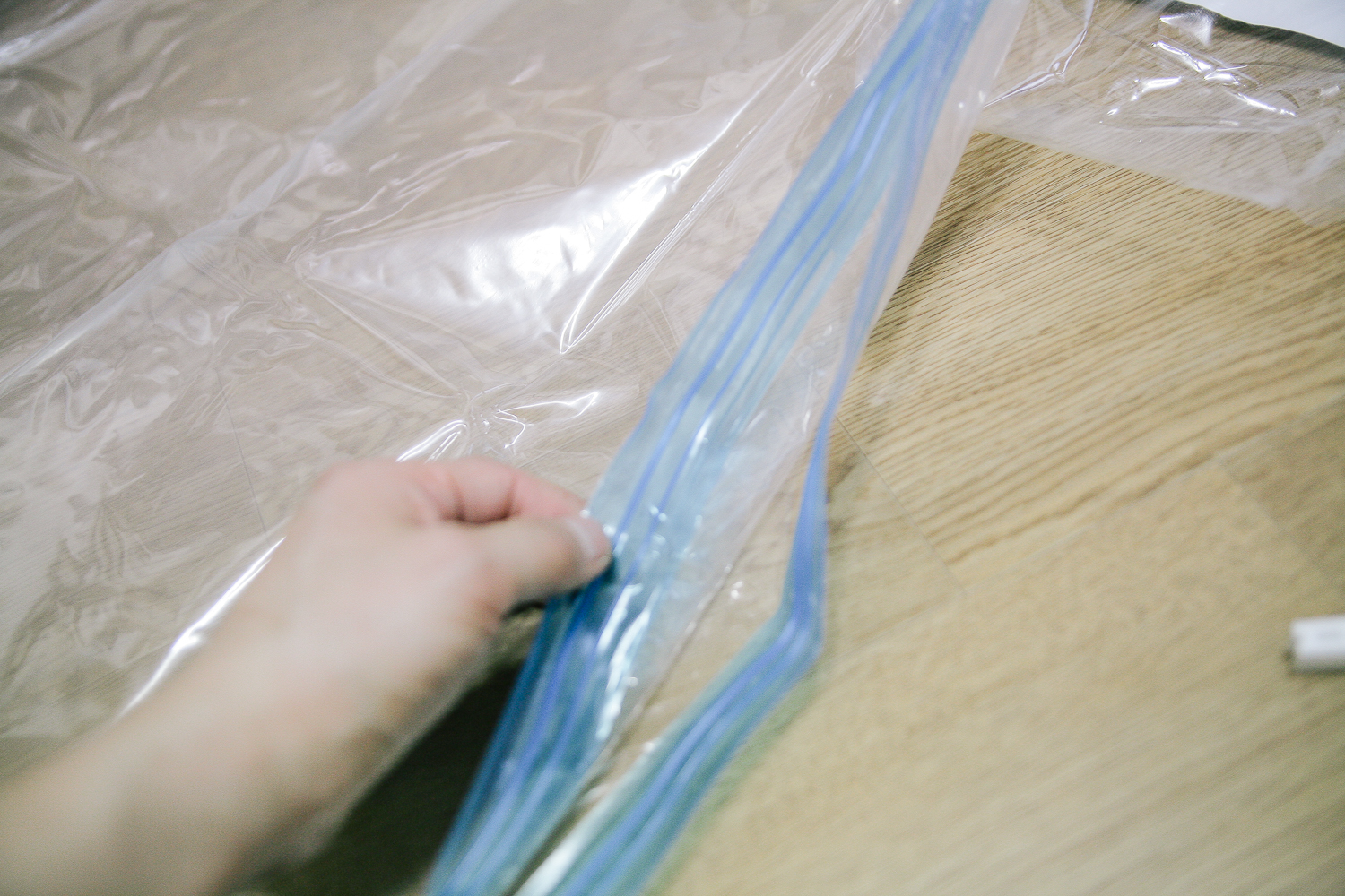 슬라이드 지퍼를 꼼꼼히 닫아주어 공기가 들어오는 것을 방지한다.