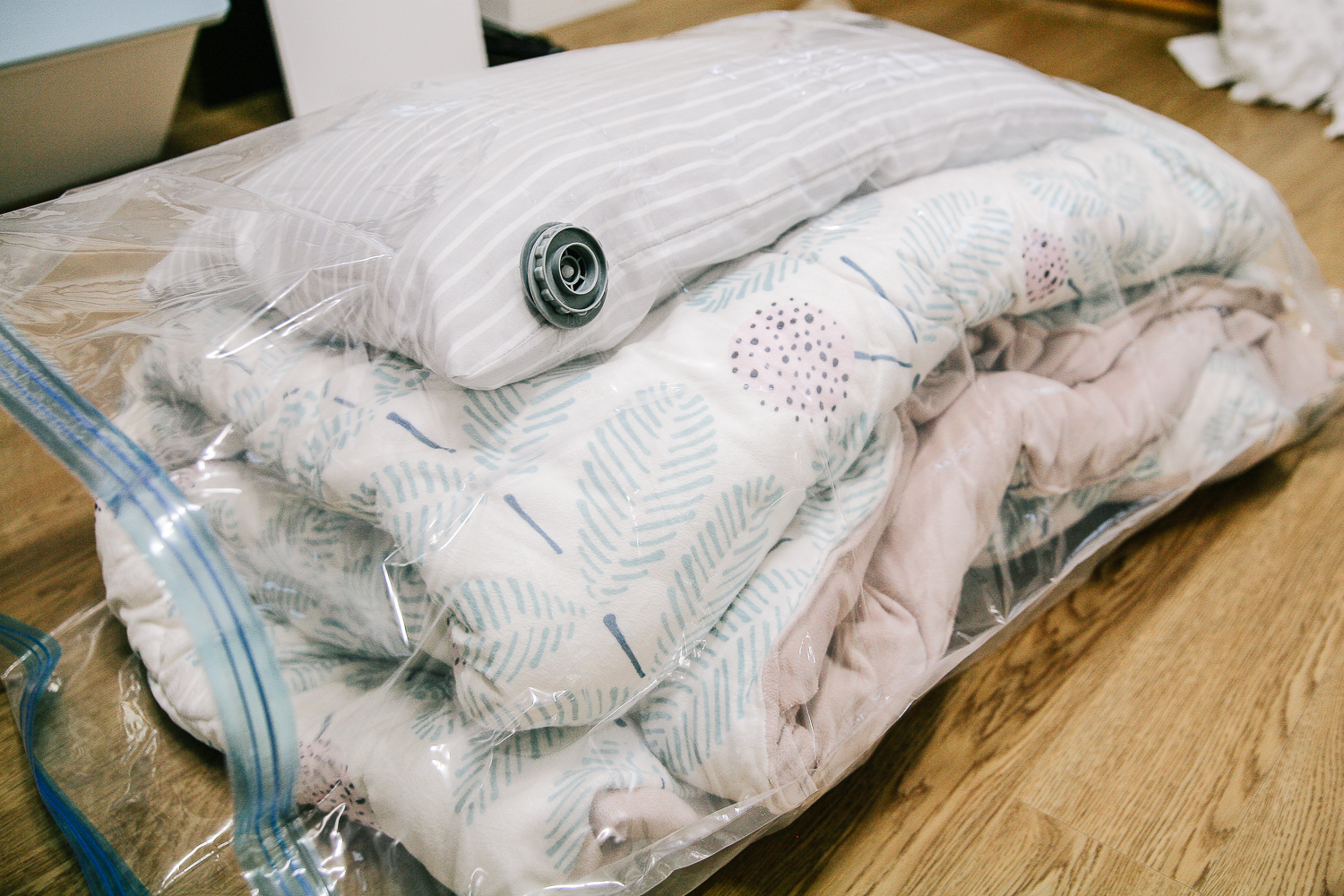 부피를 많이 차지하는 겨울 이불 특성상, 이번에도 압축팩을 활용하여 정리를 시작했다.