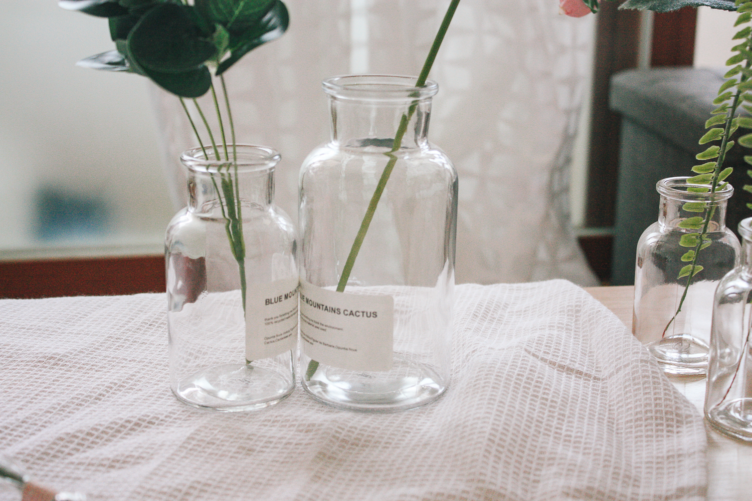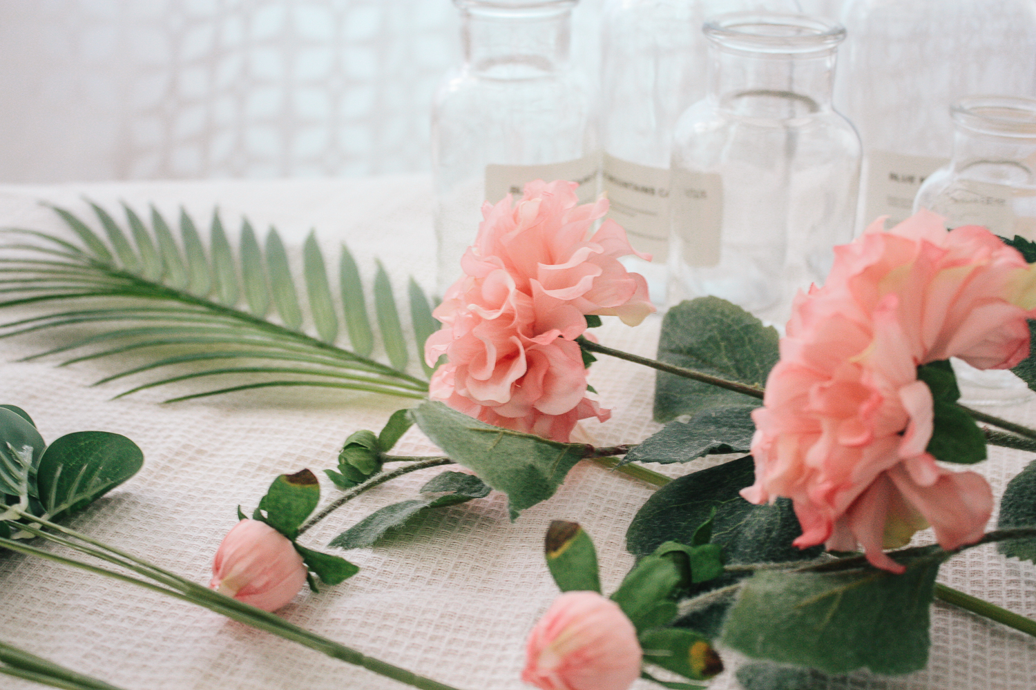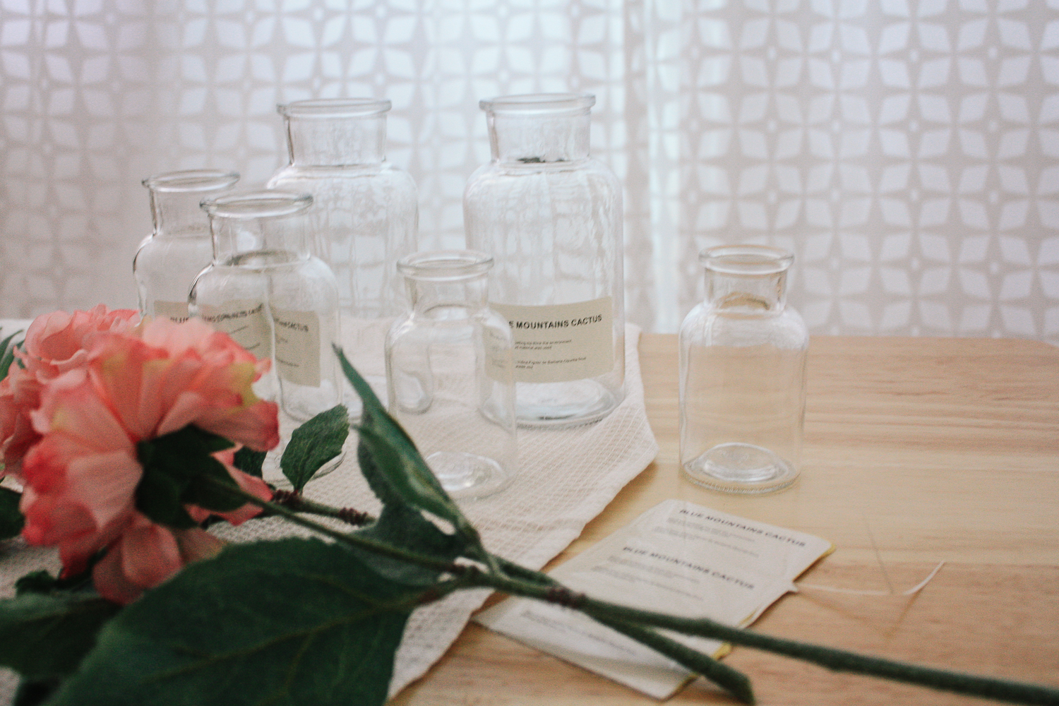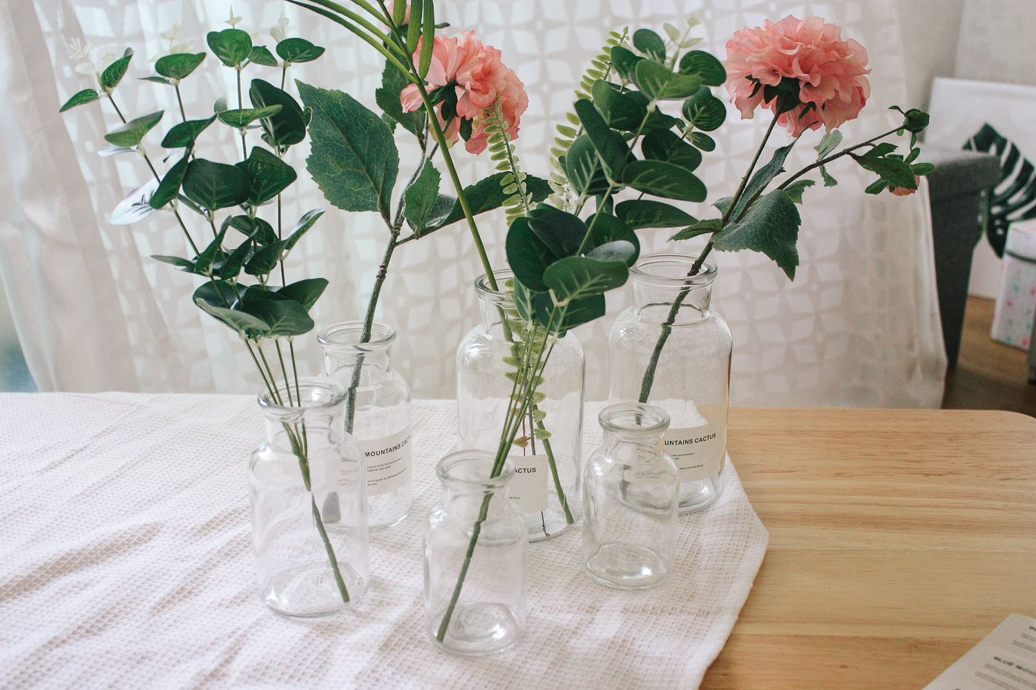 조화가 대부분 줄기가 긴편이라 500ml 시약병에 꽂아두면 가장 깔끔하게 연출이 되었다.