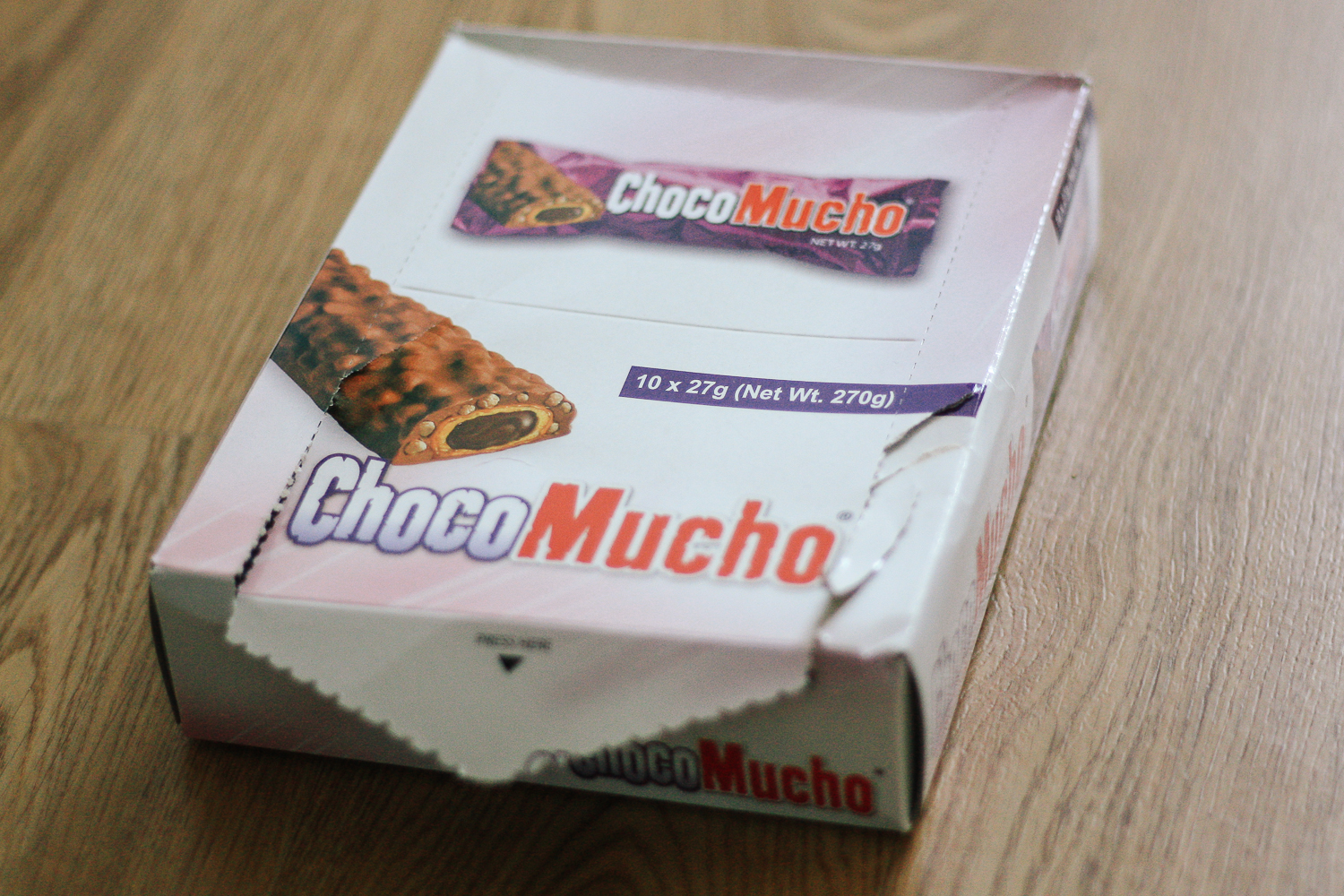 택배 박스를 개봉한 모습, 27g짜리가 박스당 10개씩 들어있다. 온통 영어로 쓰여있어 봤더니 필리핀 수입식품이었다.