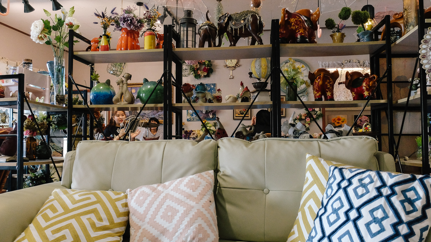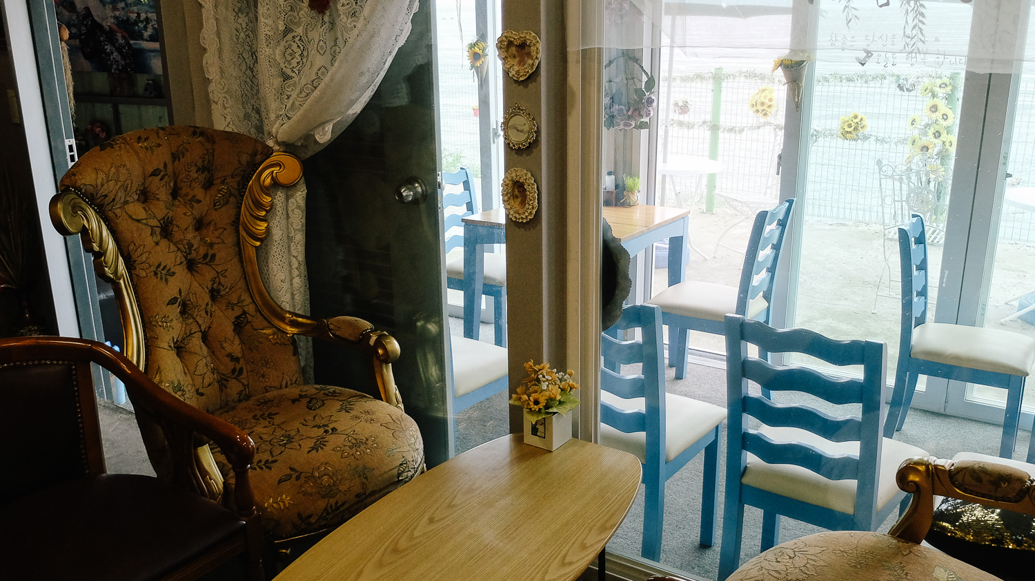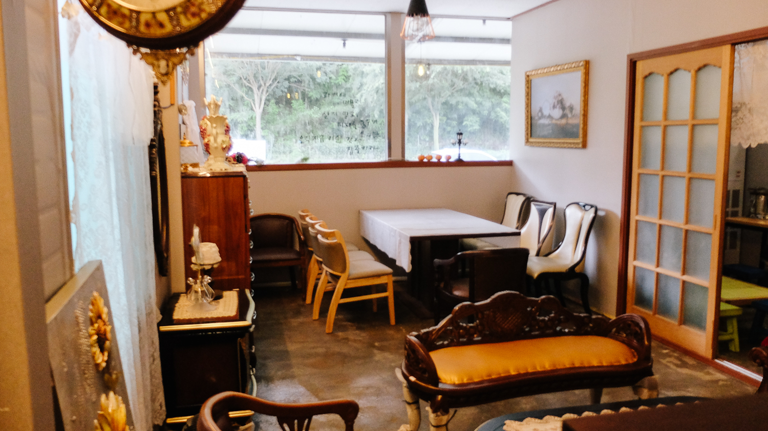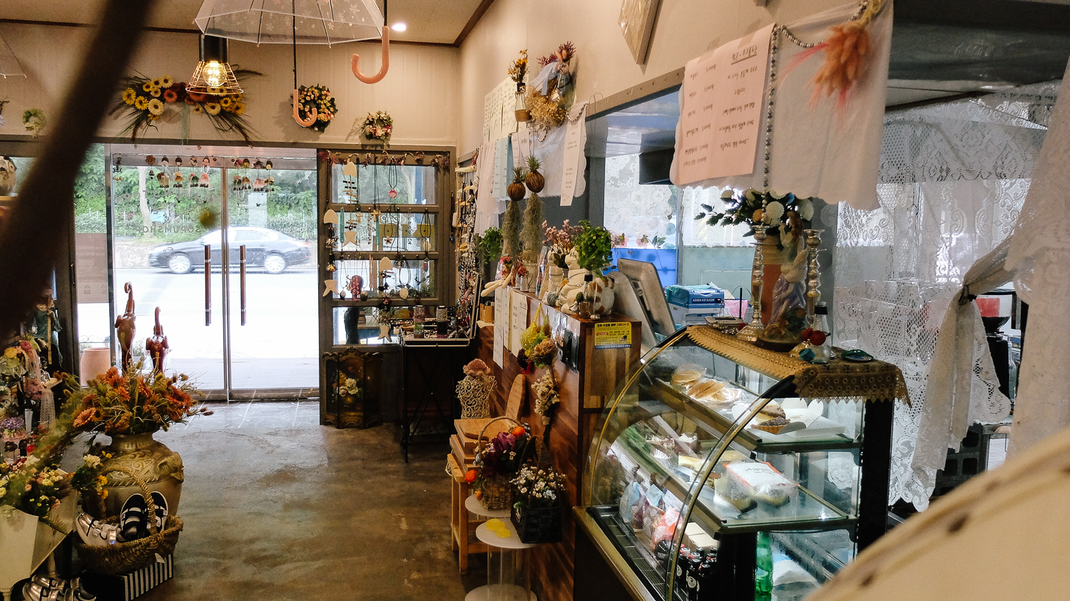 자기로 되어있는 소품, 시계, 액자, 그림 중심으로 이루어진 카페 모습이다. 진열된 소품은 인테리어 겸 판매상품이니 여기저기 둘러보며 소품을 구경하는 재미도 쏠쏠했다.