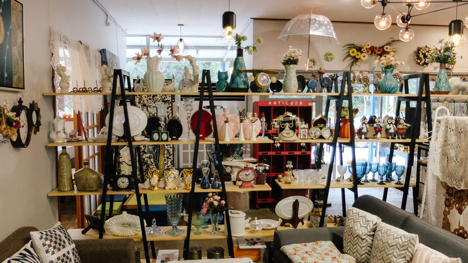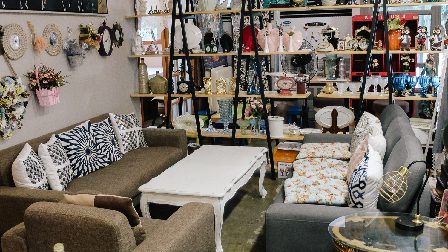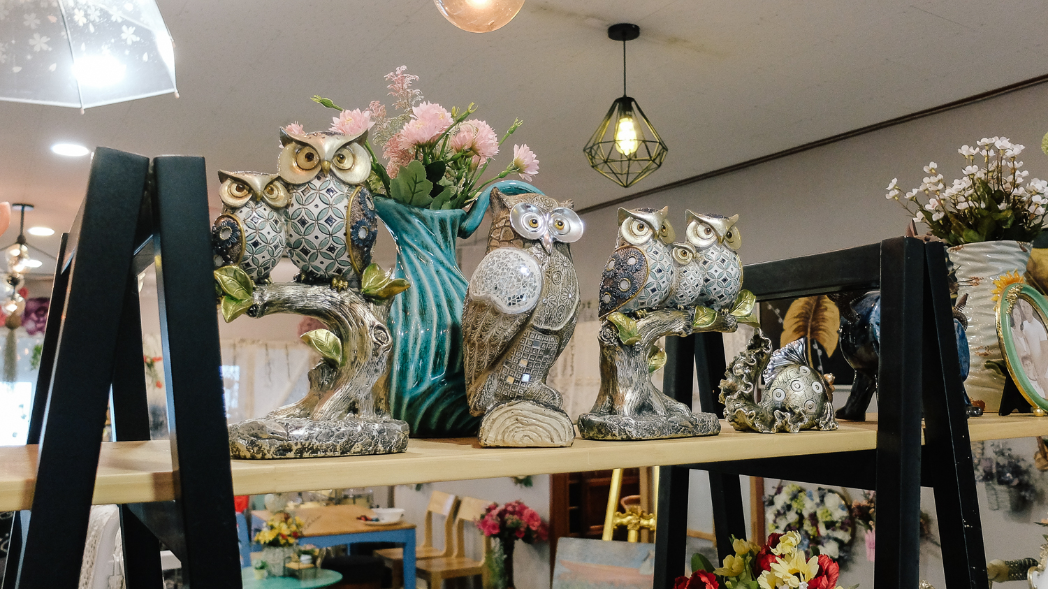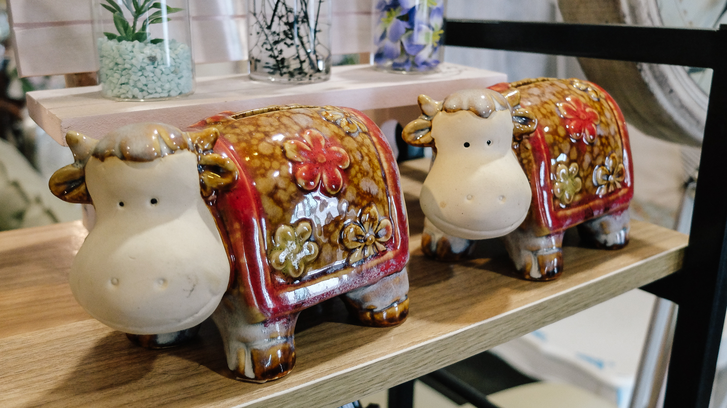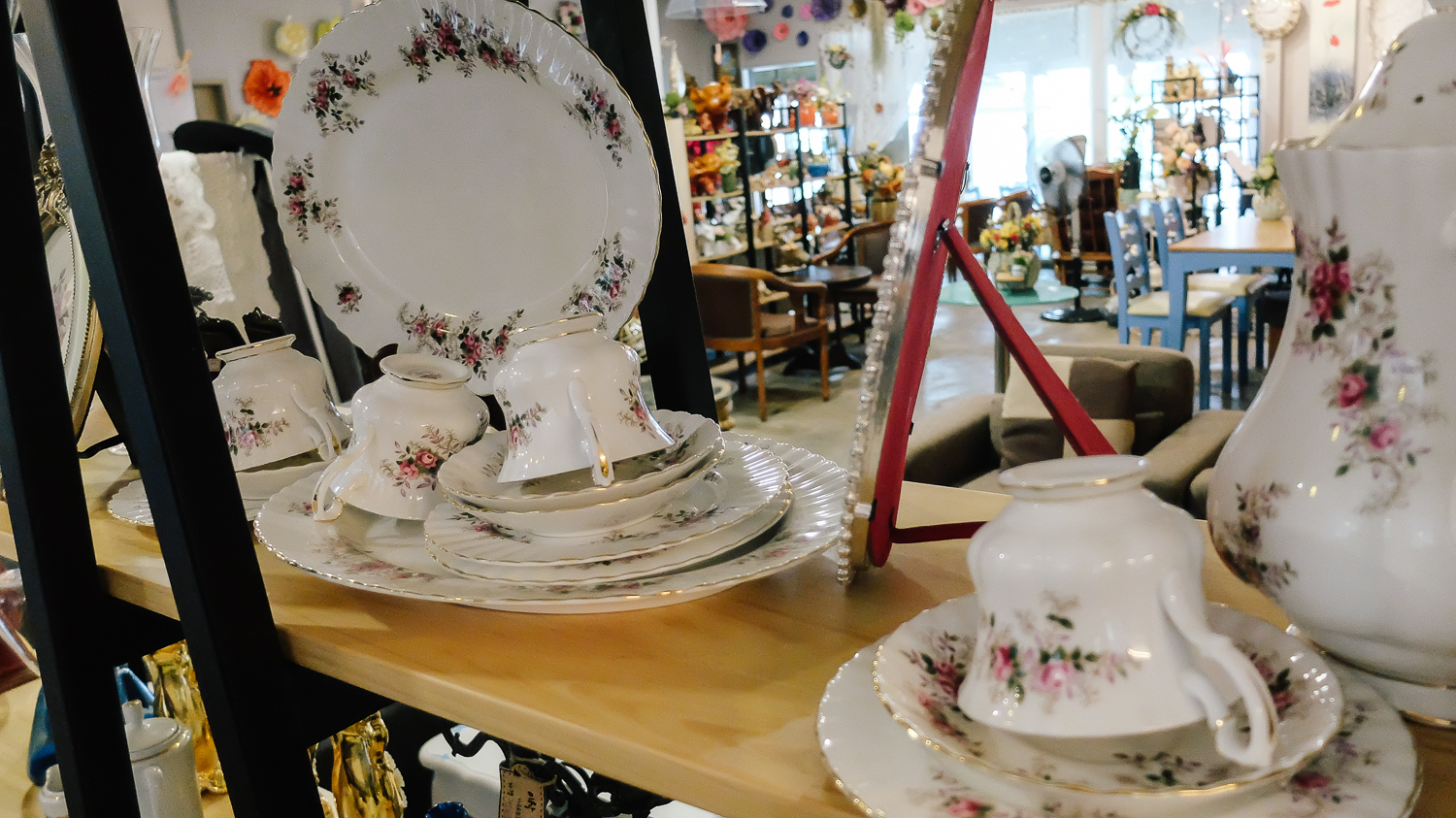 자기로 되어있는 소품, 시계, 액자, 그림 중심으로 이루어진 카페 모습이다. 진열된 소품은 인테리어 겸 판매상품이니 여기저기 둘러보며 소품을 구경하는 재미도 쏠쏠했다.