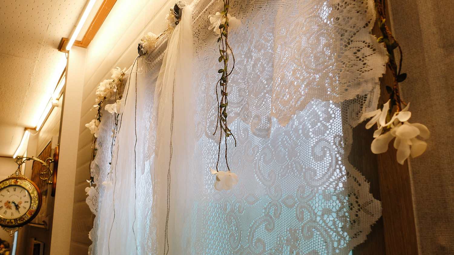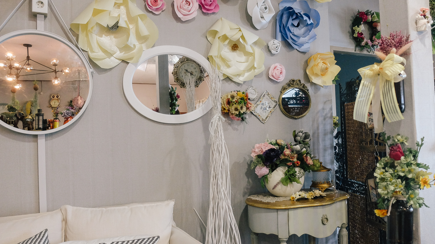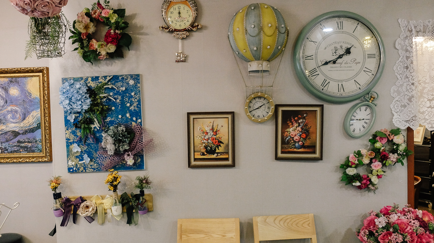 벽면 공간 하나하나 까지도 꽃과 시계 앤티크 한 장식품으로 꽉 채워져 있었다.