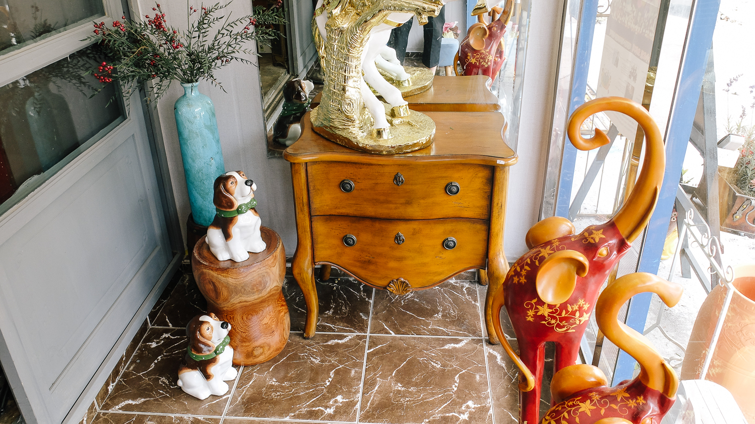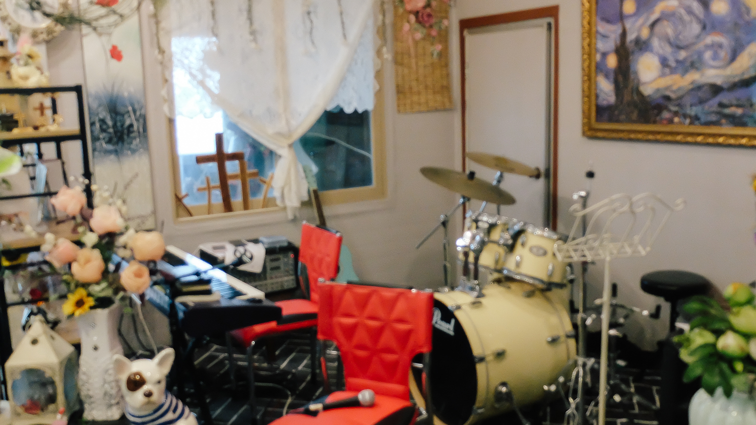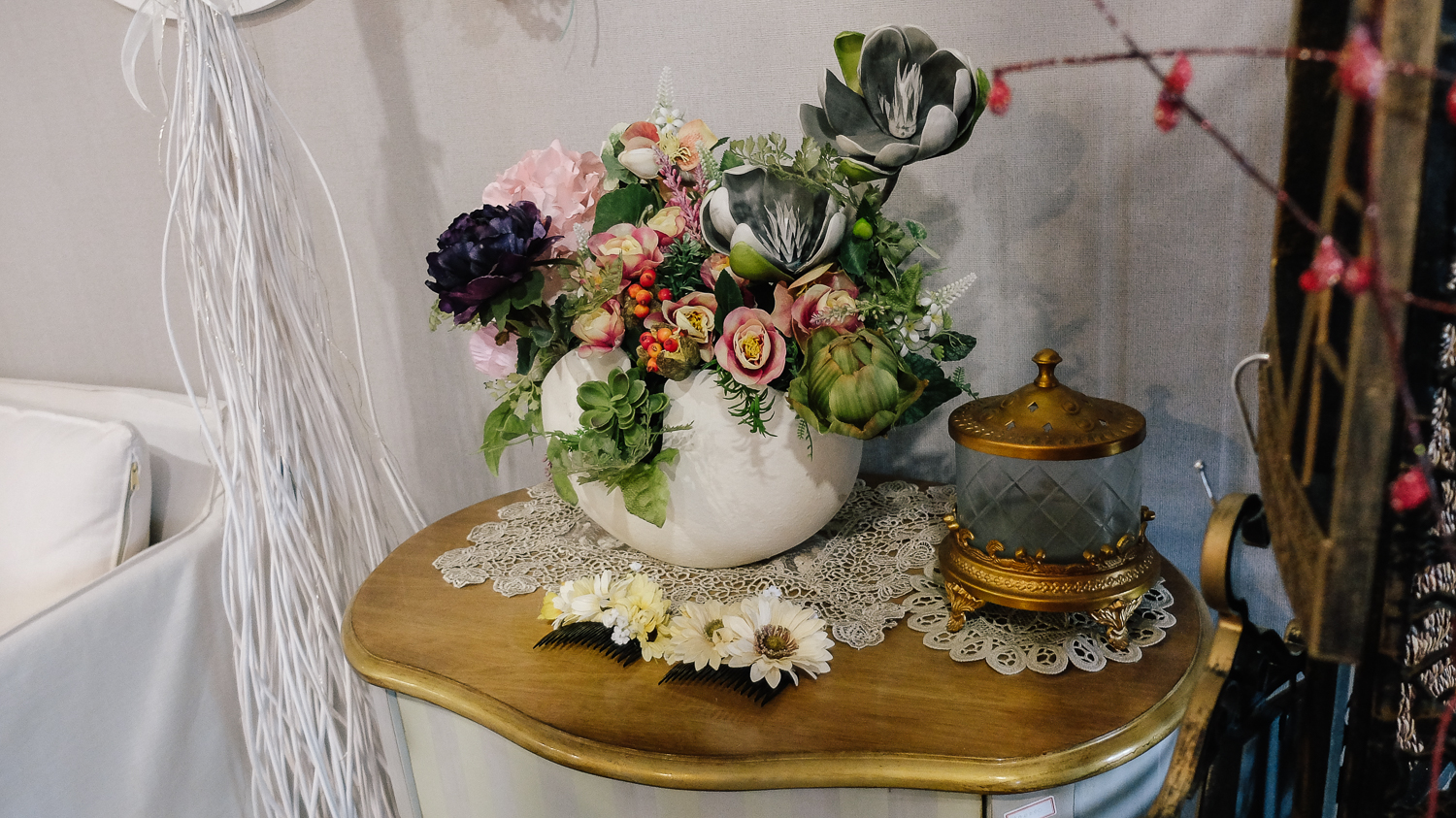 입구에서부터 느껴지는 화려함. 밋밋할 수 있다고 느껴지는 공간에 다양한 소품을 활용하여 꽉 채워진 모습이다.