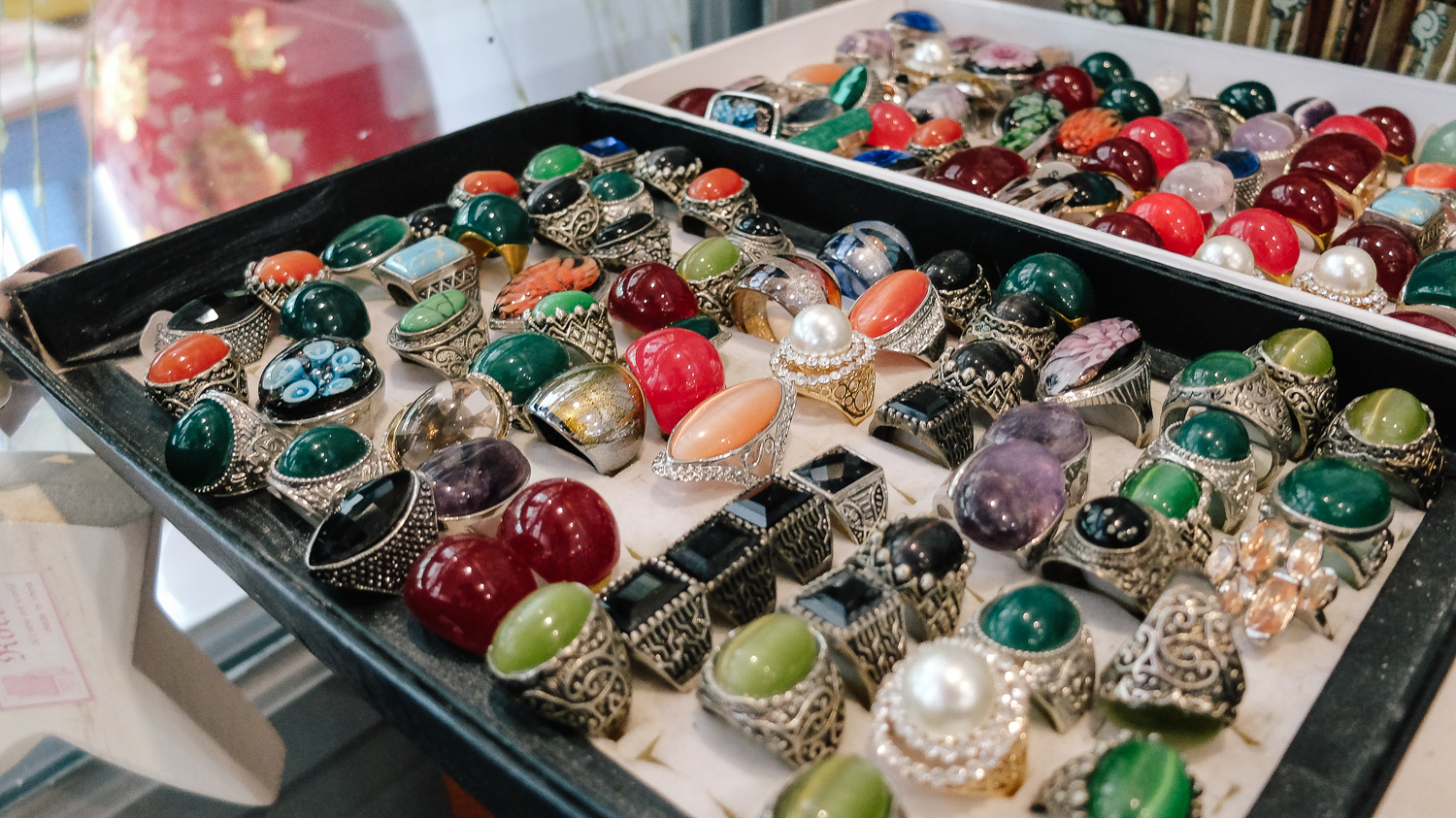 직접 비즈 작업한 사장님의 흔적들..ㅎㅎ 우리 어머니도 잠깐 비즈 공예를 취미 삼아하셨는데 잘 만들면 굉장히 가격 대비 고급진 액세서리를 만들 수 있다.
