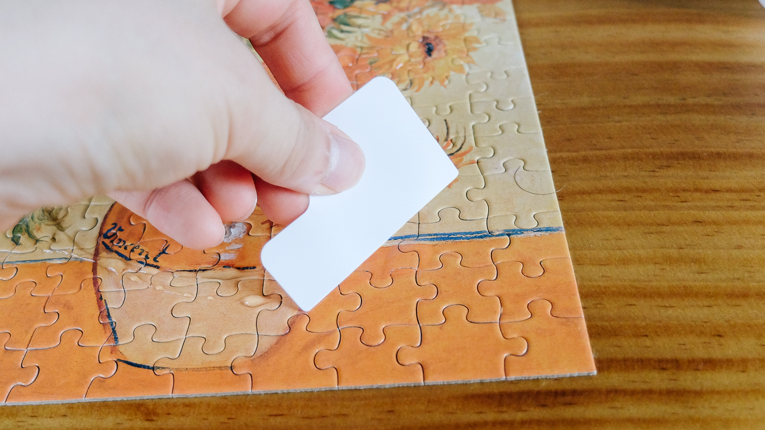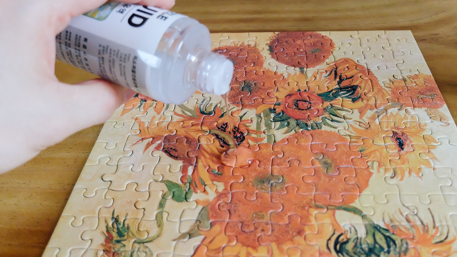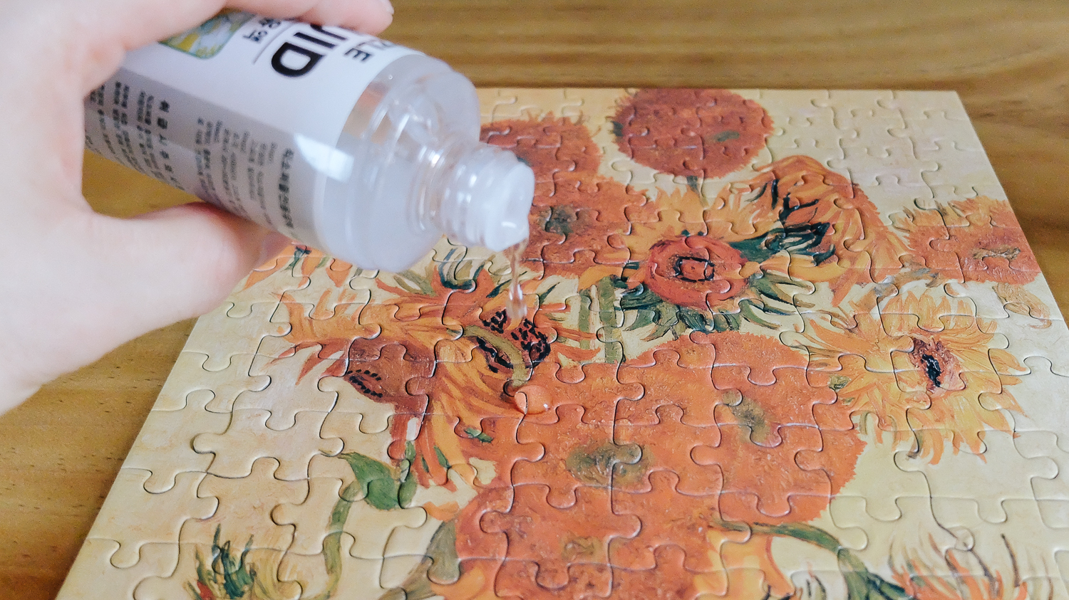 일단 과감하게 퍼즐 전용 유액을 퍼즐 중앙 쪽에 떨어뜨린다.