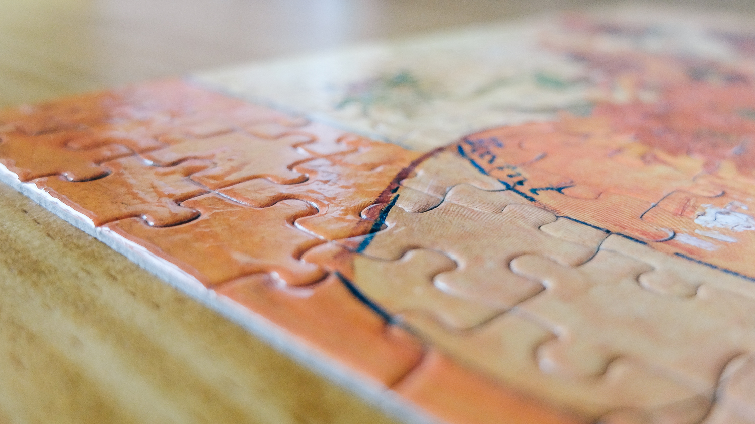 너무 마음에 들어서 액자처리를 하고자 다양한 방법을 찾던 중 퍼즐 전용 유액이 있다는 것을 알게 되었다. 퍼즐 전용 유액은 표면에 유액을 발라 말려주면 얇게 코팅 처리가 되어 퍼즐 조각들이 떨어지지 않는다.
