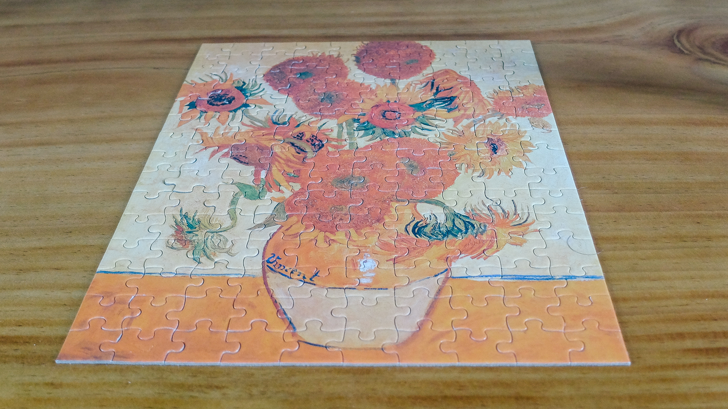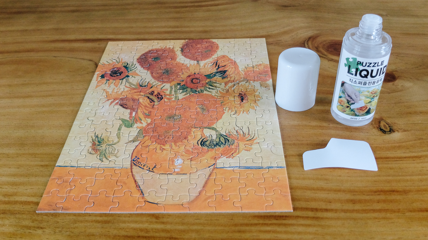 짝꿍과 내가 요즘 취미 붙인 것은 퍼즐 맞추기다. 엄청나게 고난도 레벨은 하지 못하고 105피스인가 그 정도 수준으로만 퍼즐을 맞추고 있다. 그중 여러 가지를 했는데 짝꿍이 가장 마음에 들어하는 빈센트 반 고흐의 해바라기 퍼즐이다.