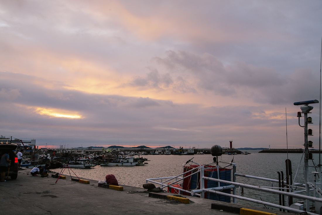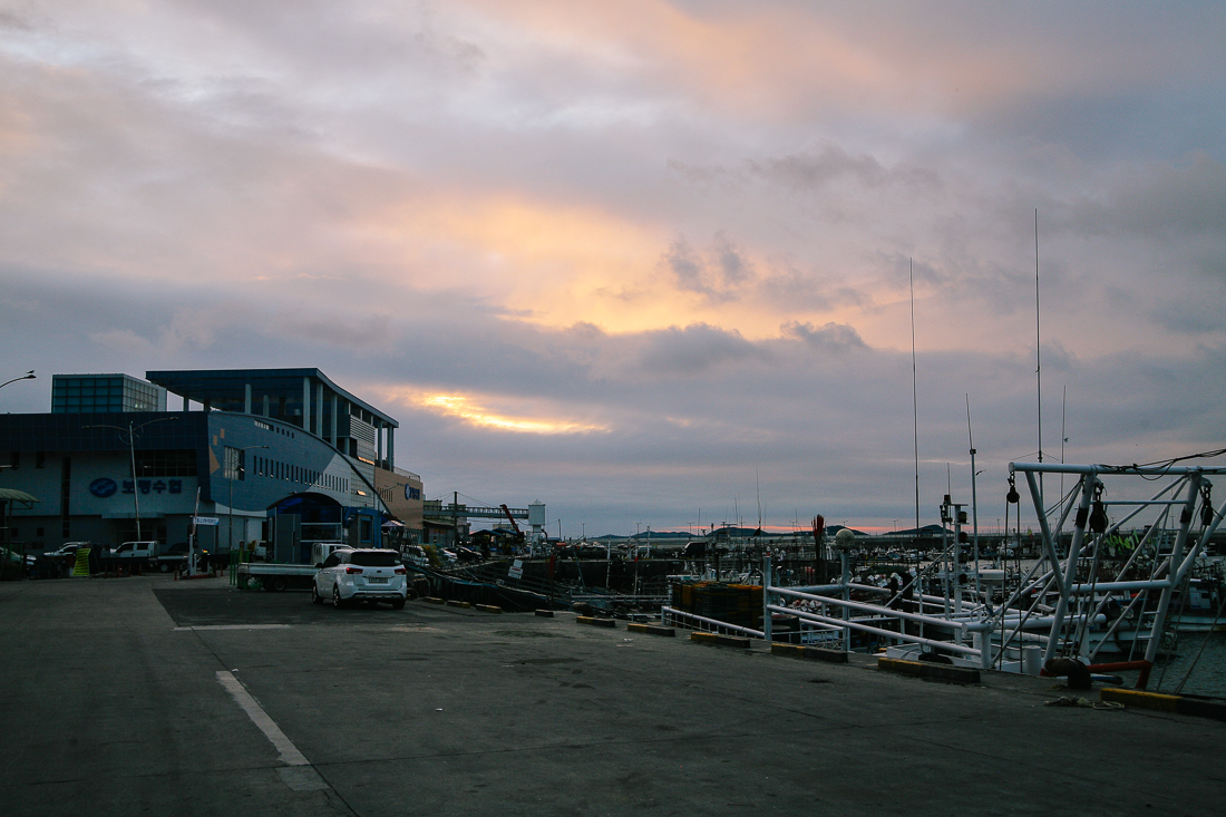 수산시장도 있고 횟집도 있다 보니 특유의 비릿한 생선 냄새와 바다 냄새가 느껴졌지만 구름과 멋지게 어우러진 노을 감상하니 시큰한 냄새를 잠시나마 잊을 수 있었다.