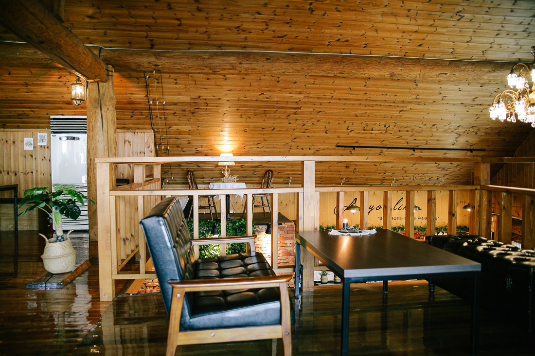 내부 역시 온통 원목으로 마감되어 있다. 우리가 방문했을 때 카페 오픈을 한지 일주일도 안되었다고 했다. 그래서 인스타그램 관련 게시글을 작성 시 텀블러를 주는 이벤트도 있었다. 나도 인스타를 하지만 카메라 사진을 바로 넘길 수 없는 구모델이므로 다음 기회를 기약했다ㅠ_ㅠ