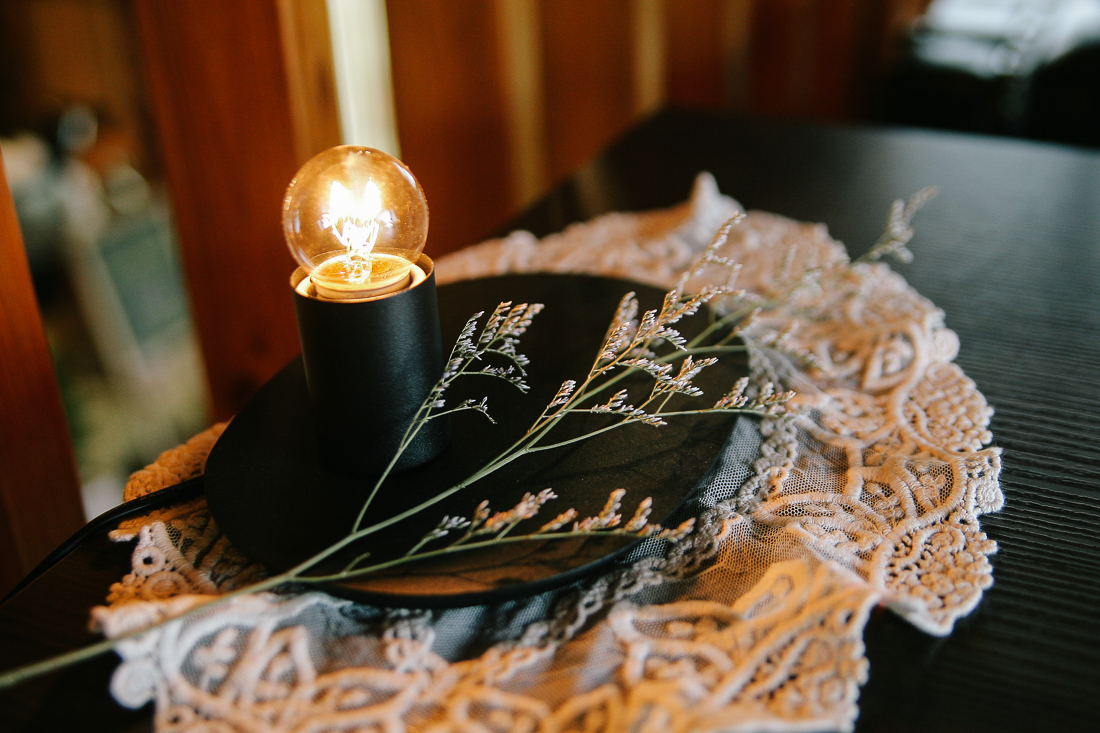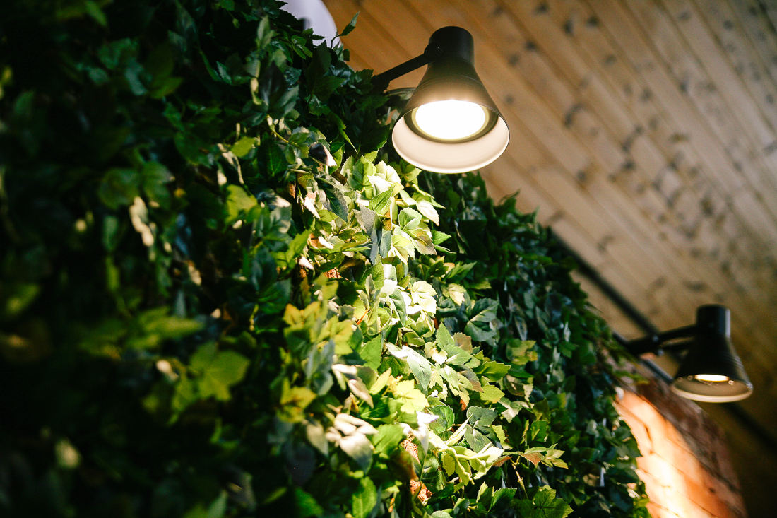 액자와 인테리어 전구 조명이 곳곳에 있다.
