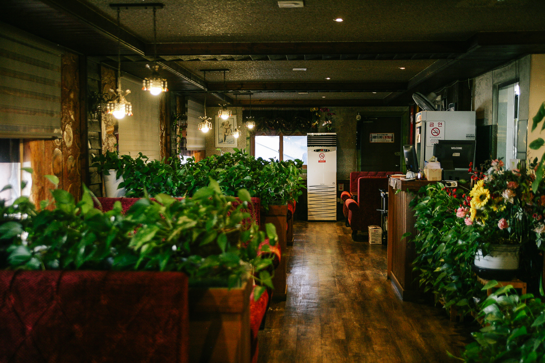 테이블 사이사이에 있는 선반에도 화분을 놓은 모습이다. 어느하나 시든 식물이 없는 것으로 보아 사장님께서 많은 사랑과 관심으로 보살펴주는 것 같았다 :)