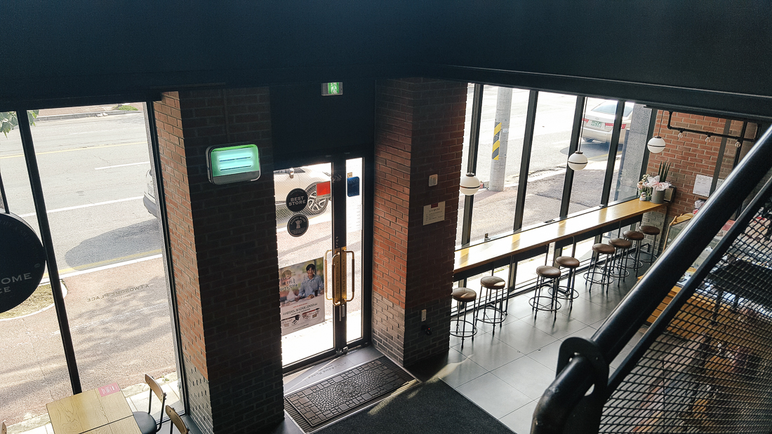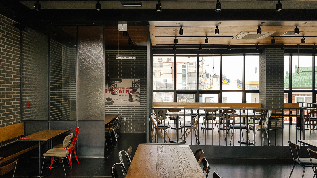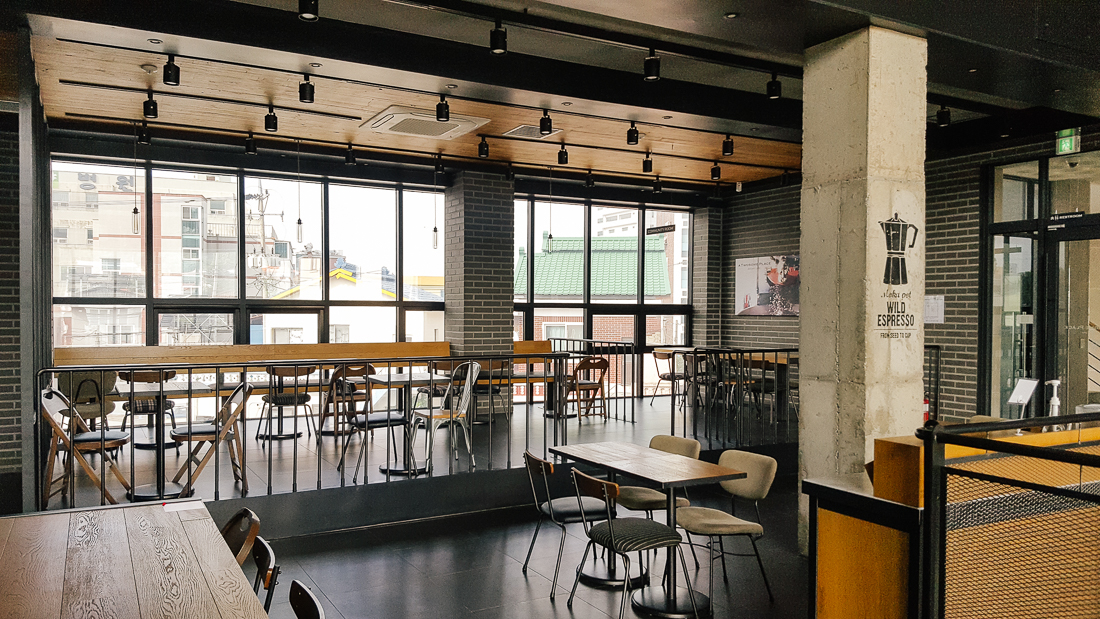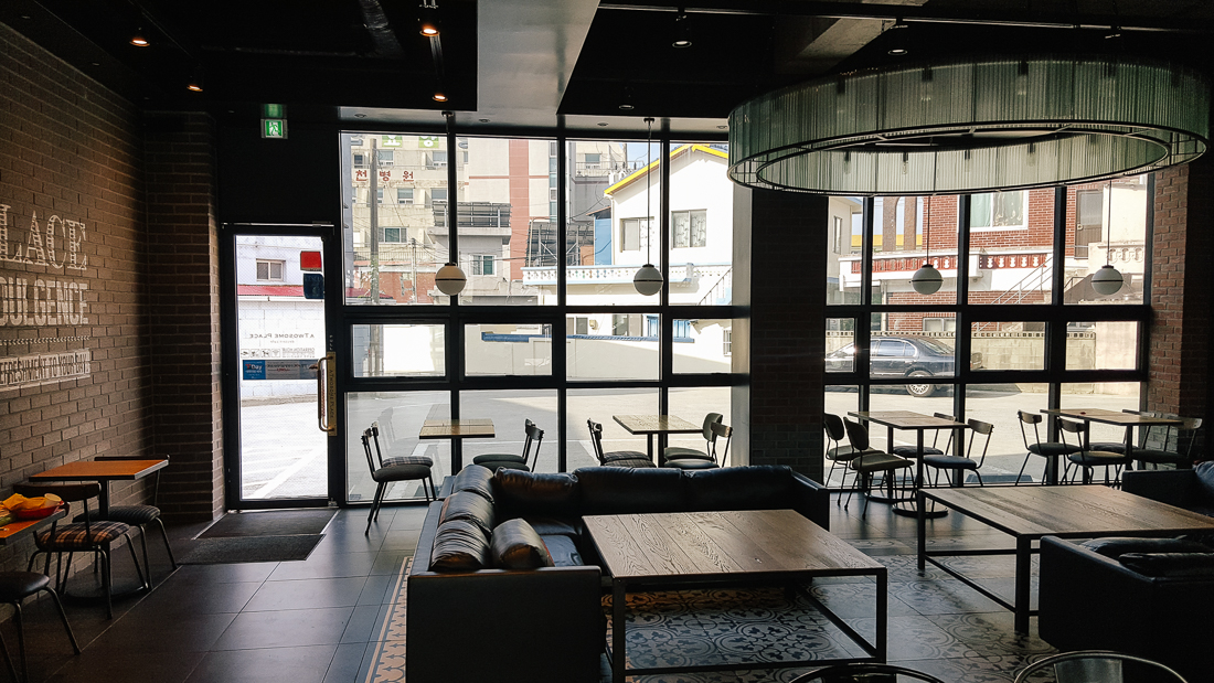 2층에도 테이블간 간격도 여유 있게 가져가면서 단체석, 2인, 4인석 등 다양하게 배치한 것을 볼 수 있다. 이른 오전에 방문한터라 비교적 한산하였다. 한쪽 벽면은 통유리도 되어 있어 밝은 채광을 자랑한다.