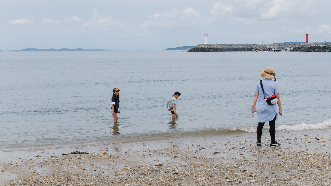 대천 해수욕장과는 달리 조금은 작은 규모였지만, 중간에 자갈밭도 있고, 등대, 방파제도 있어 뷰가 더욱더 풍성해야 한다고나 할까? 더욱더 오밀조밀 모여있는 꽉 찬 풍경을 담을 수 있었다.