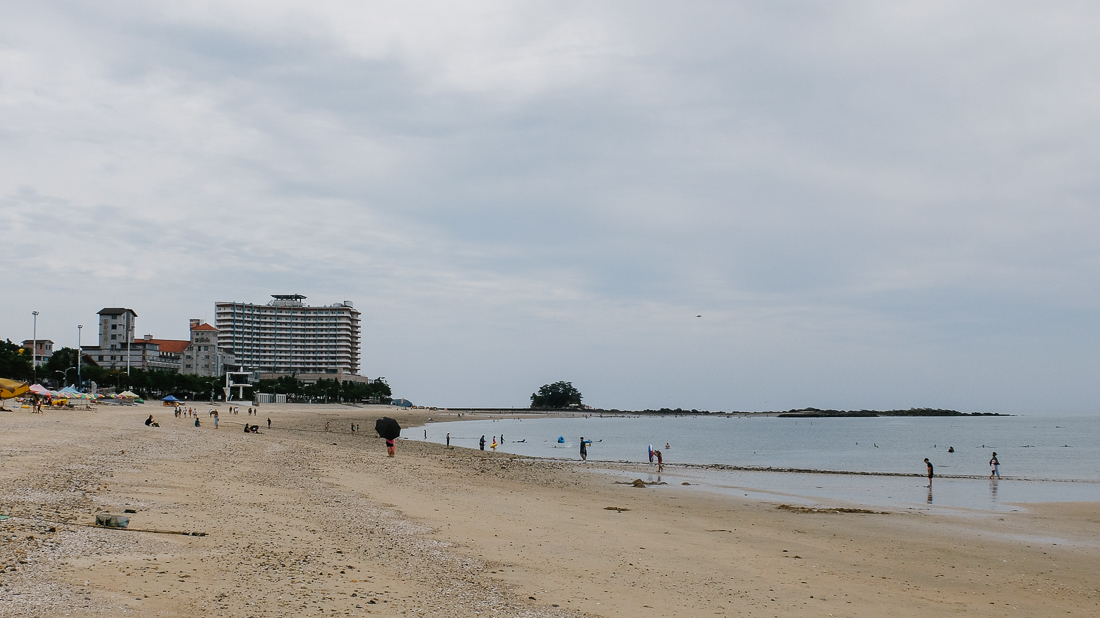 해수욕장 맞은편에 보이는 다양한 횟집들. 횟집 앞에는 오가는 사람들을 불러들이는 이모들이 꽤 볼 수 있었다.