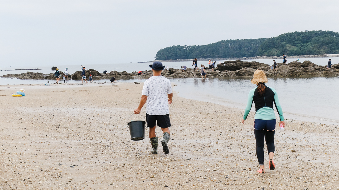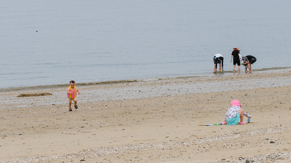 저 바위 언덕에서는 무엇을 잡는지 많은 어린이들이 모여있었다. 나도 어렸을 때 꽃게나 조개를 잡았던 기억이 있다.