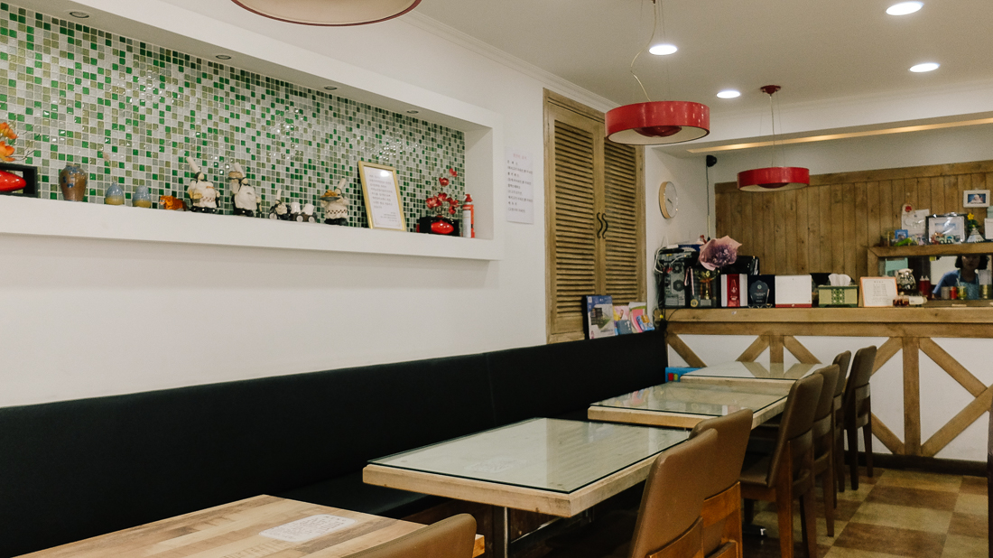 깔끔한 인테리어에 테이블은 대략 8-9개 정도가 있었다. 우리는 창가쪽에 위치하여 식사를 하였다.