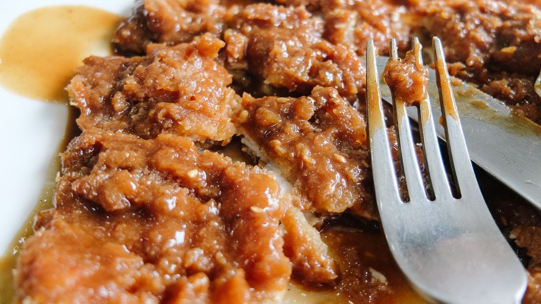 보이는가 돈까스의 자태를! 양념 듬뿍 머금은 돈까스가 내 목구멍을 강타한다 ㅋㅋ