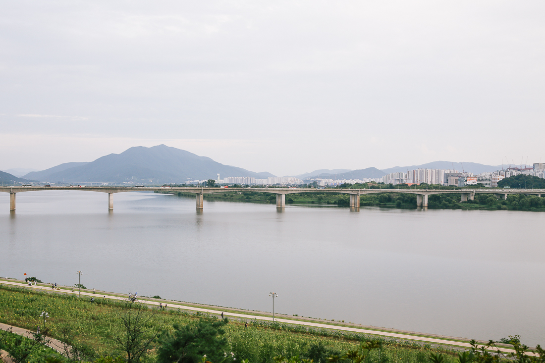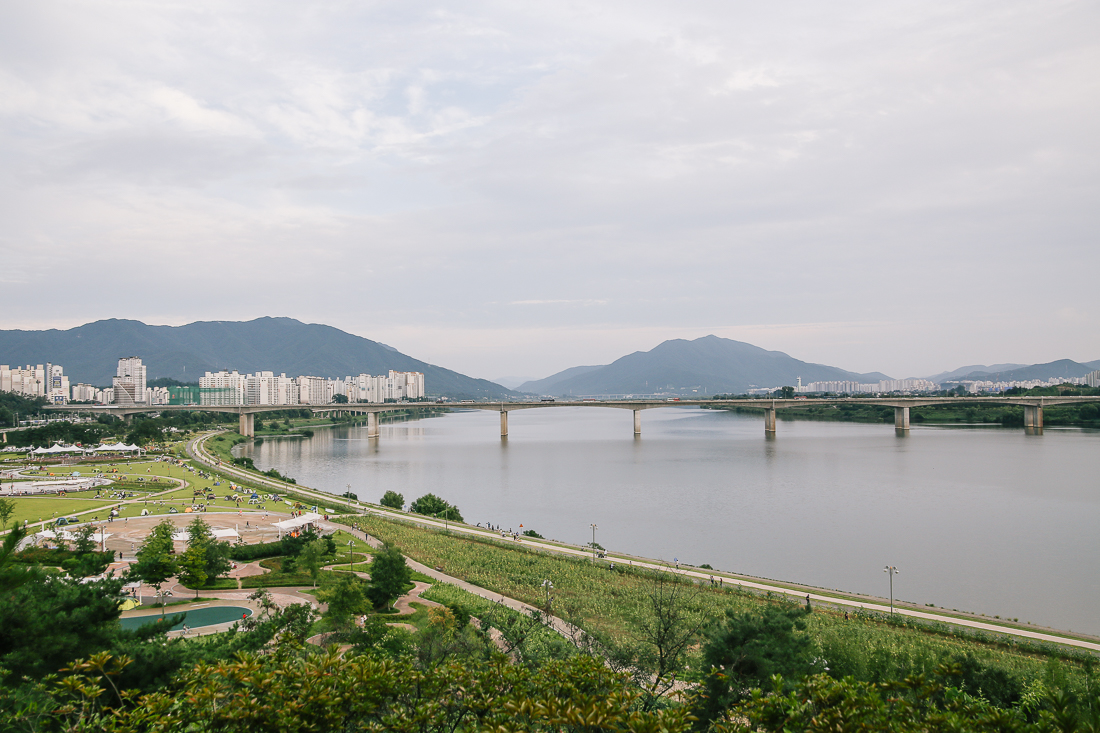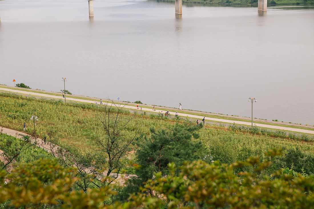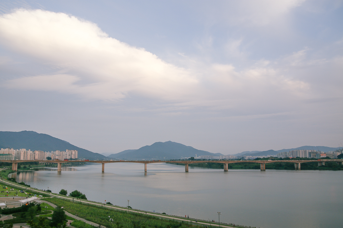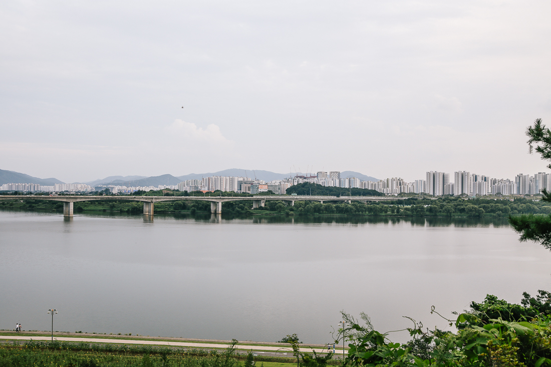 멀리 보이는 미사대교. 그리고 이름 모를 아파트와 건물들. 한강과 산 능선, 맑은 하늘. 정말로 아무 생각 없이 풍경만 바라보며 쉬기 좋은 뷰였다.