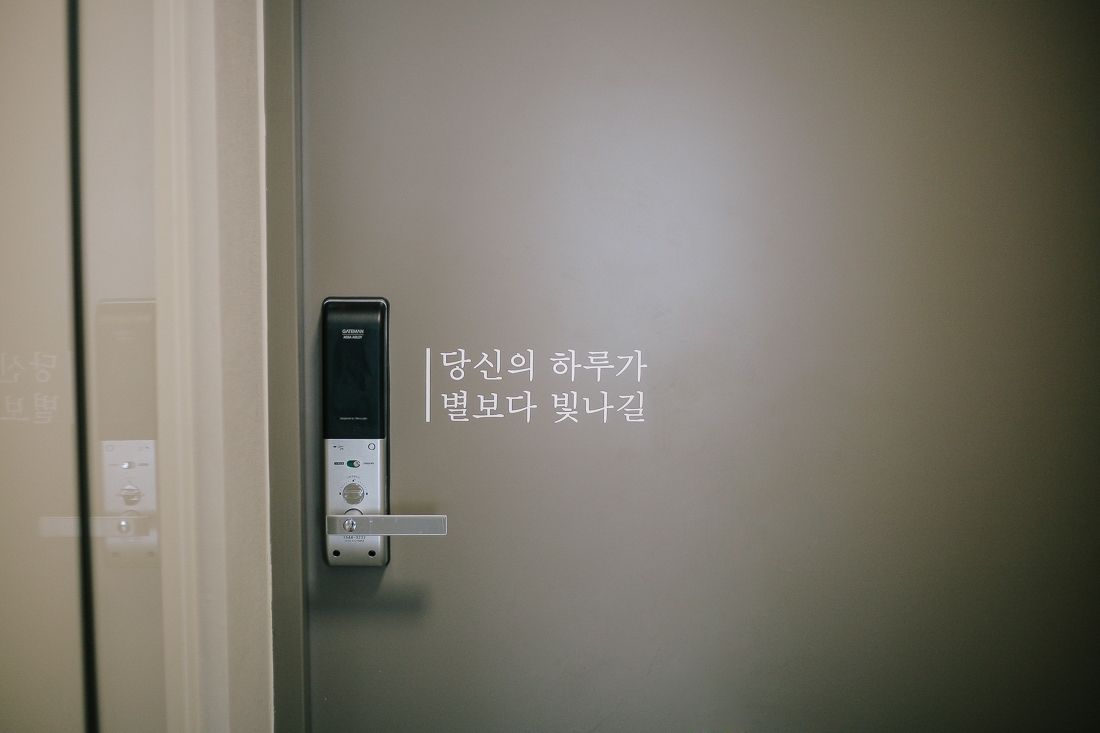집을 나서고 들어올 때 가장 처음으로 마주할 수 있는 장소인 만큼 하루의 의미를 느낄 수 있도록 해주고, 무언의 응원을 보내는 글귀를 부착하였다. 우리 모두 파이팅!