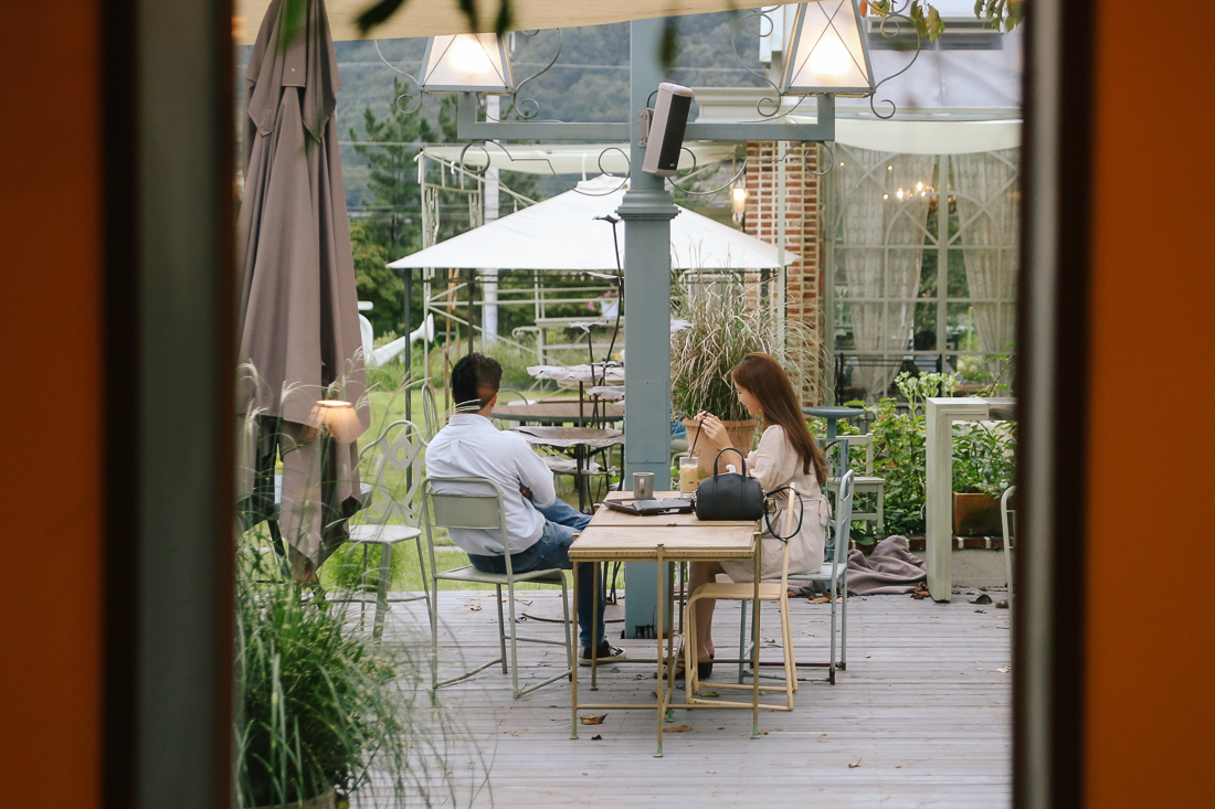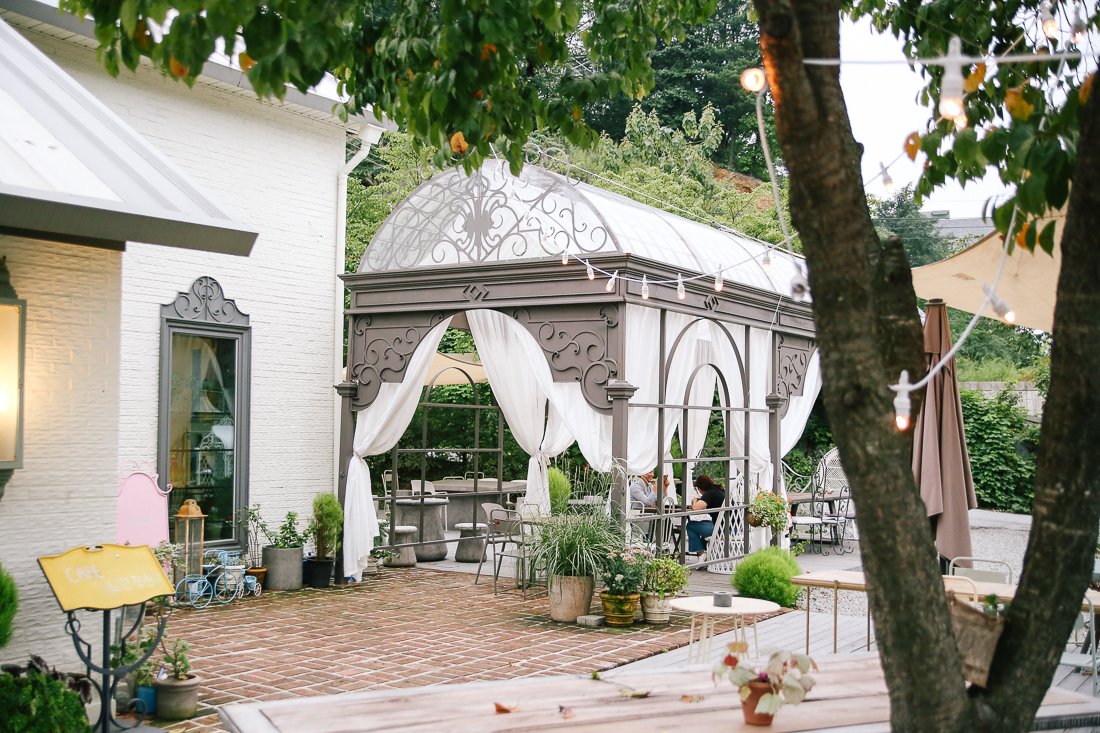 이곳은 퍼걸러라는 곳이다. 처음엔 명칭을 몰랐으나 처음 방문했던 포스팅에 카페 사장님이 직접 이곳 사진이 예쁘다고 하여 알게 되었다. ㅎㅎ 퍼걸러에 바람결에 따라 팔랑이는 커튼이 매우 분위기 있는 테이블이다.