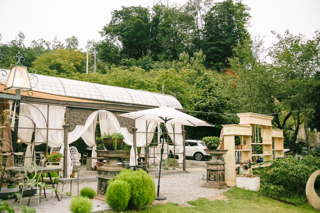 다양한 식물들을 만나볼 수 있는 정원. 그리고 특유의 동화 감성이 느껴지는 테이블과 장식품을 만나볼 수 있었다. 그리고 예전에 방문했을 땐 좌측에 흙바닥이었던 곳이 핑크 뮬리가 심어져 있었다. 비록 시즌이 아니라 핑크빛을 띠고 있지 않지만 핑크 뮬리를 본 적이 있는 나는 그 식물이 핑크 뮬리라는 것을 한눈에 알아볼 수 있었다. 적당히 듬성듬성 심어놓은 것이 포토존을 의식한 것인지 자연적인 건지는 모르겠지만 꽉 차게 심어진 모습이 아니라 조금 아쉬웠다.