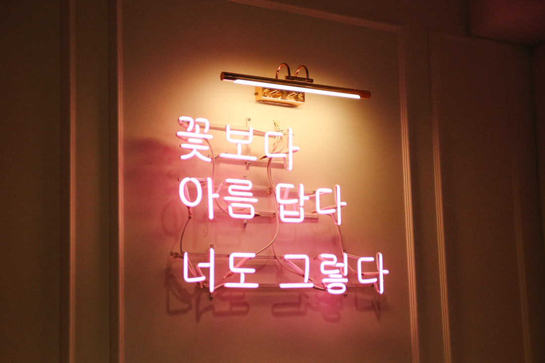 별내 타르타르 정문 쪽에 위치한 레터링 네온사인. 특유의 감성이 느껴지는 인테리어다.