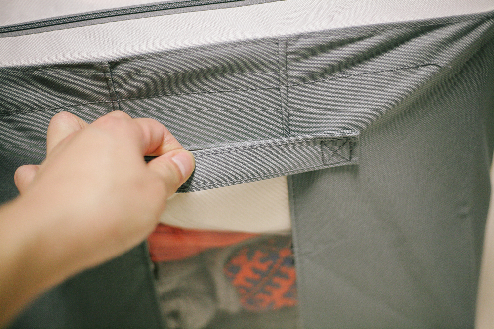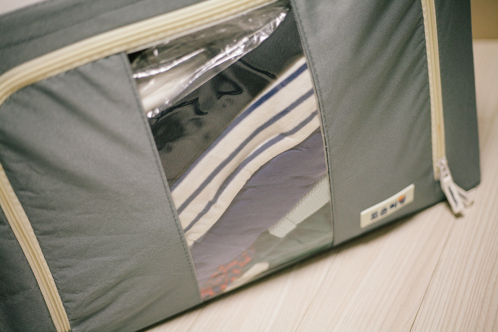 꼼꼼한 박음질과 손잡이, 지퍼가 있어 이불, 옷, 기타물품을 보관하기 참 편리하다. 너무 과하게 넣어서 지퍼를 잠근다면 뜯어질 수 있으니 적당히 수평면이 유지되게끔 꽉 채우면 좋을 것 같다.