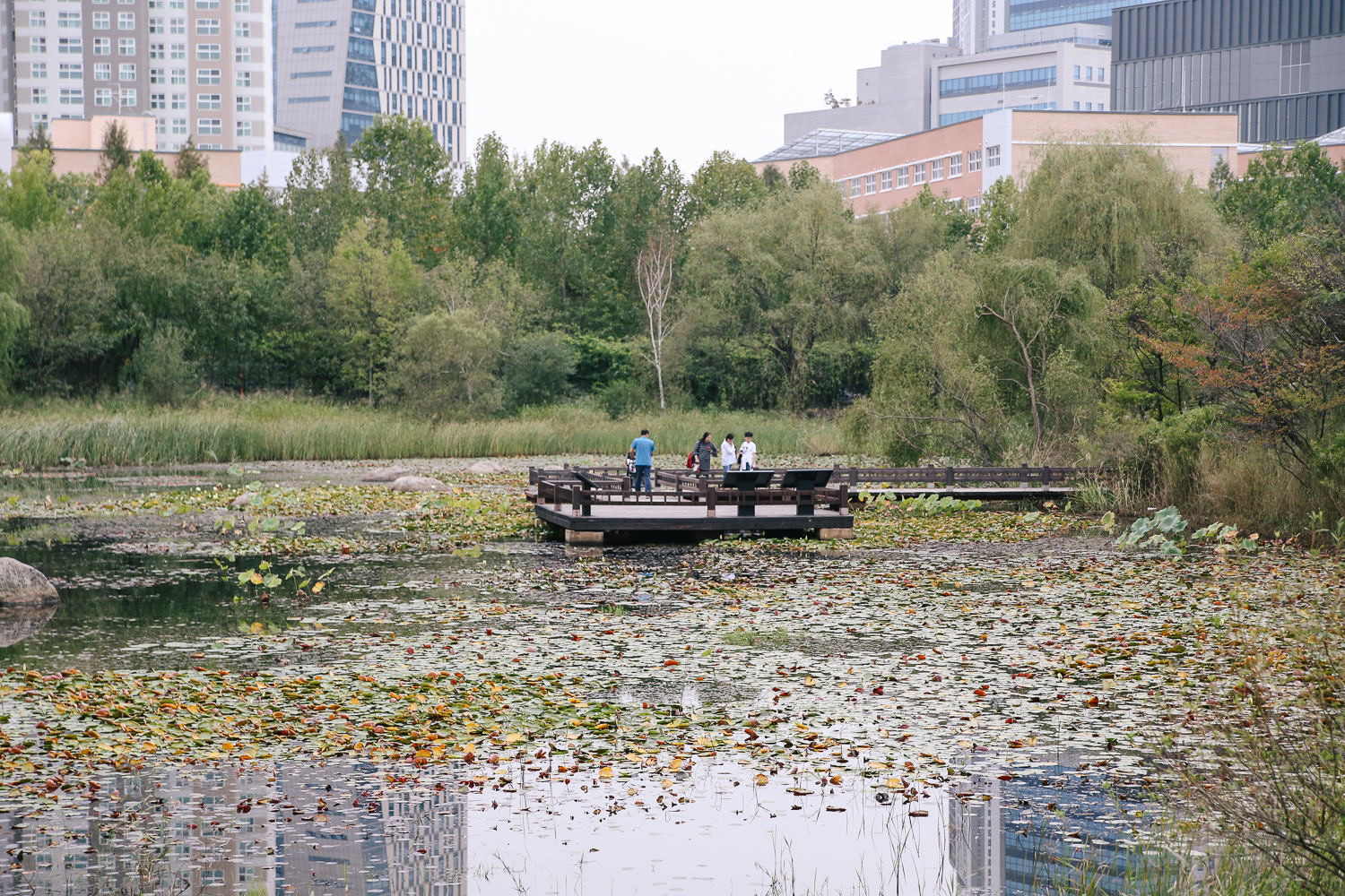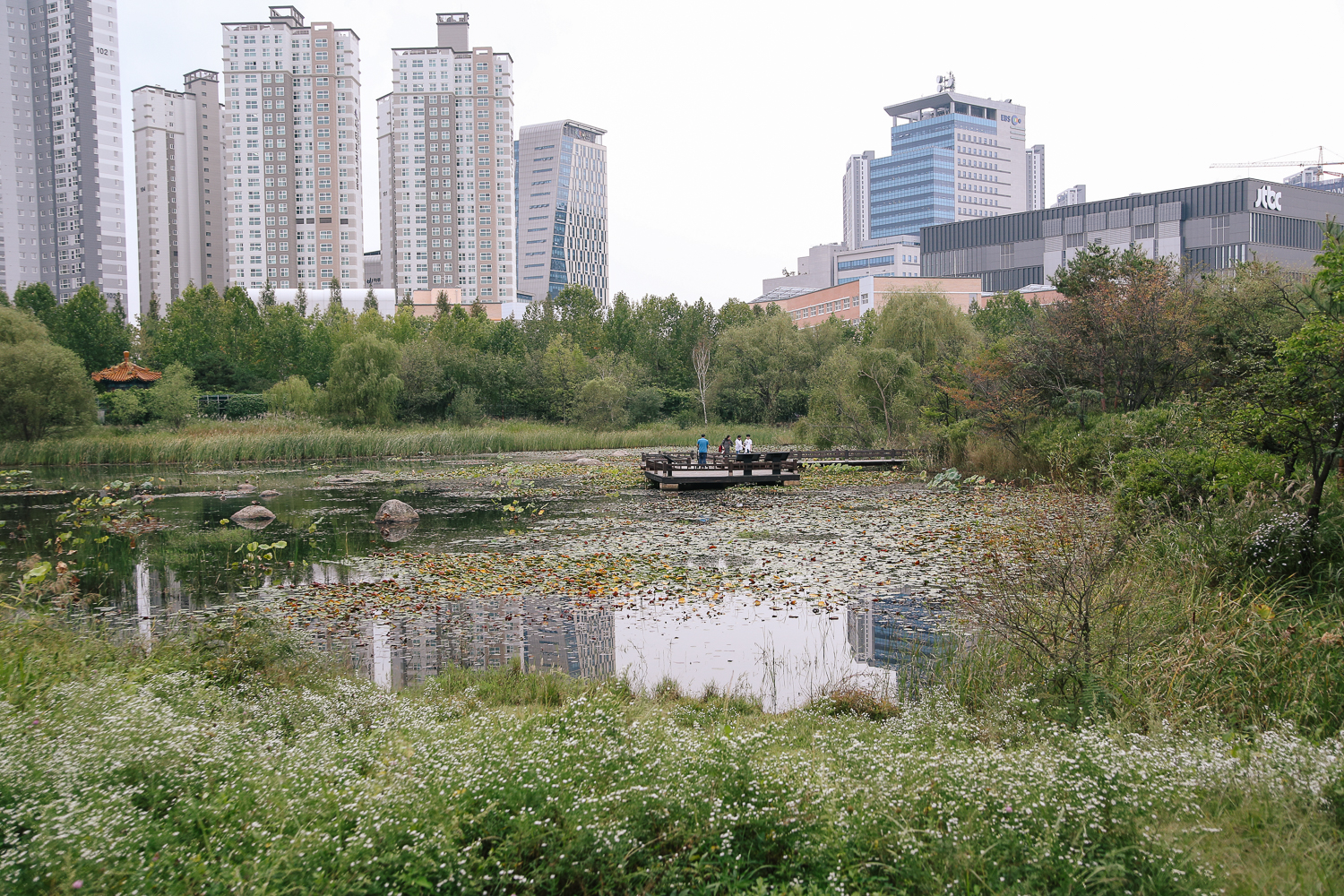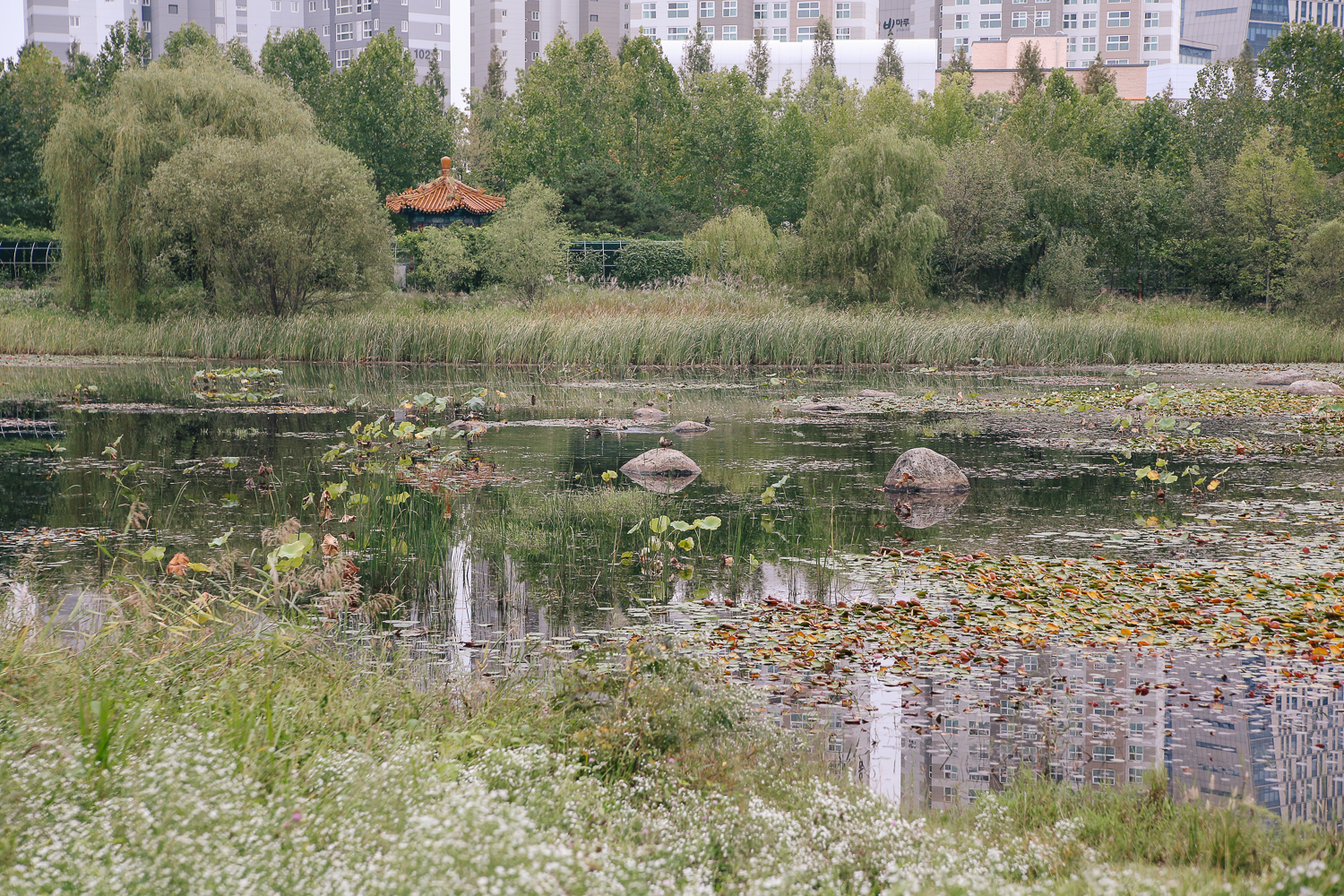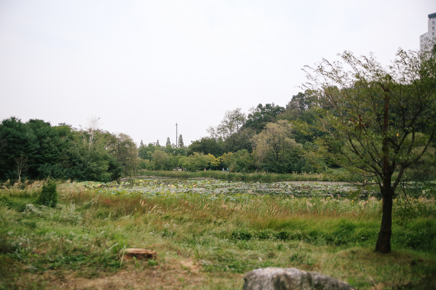 살짝 아쉬웠던 것은 아무래도 도심에 있는 공원이다 보니 공원 저먼 풍경에 아파트나 건물이 보인다는 것. 산 능선이나 높은 나무가 꽉 찼으면 더욱더 자연 속에 있는 느낌을 줄 수 있지 않을까 하는 아쉬움이 컸다.
