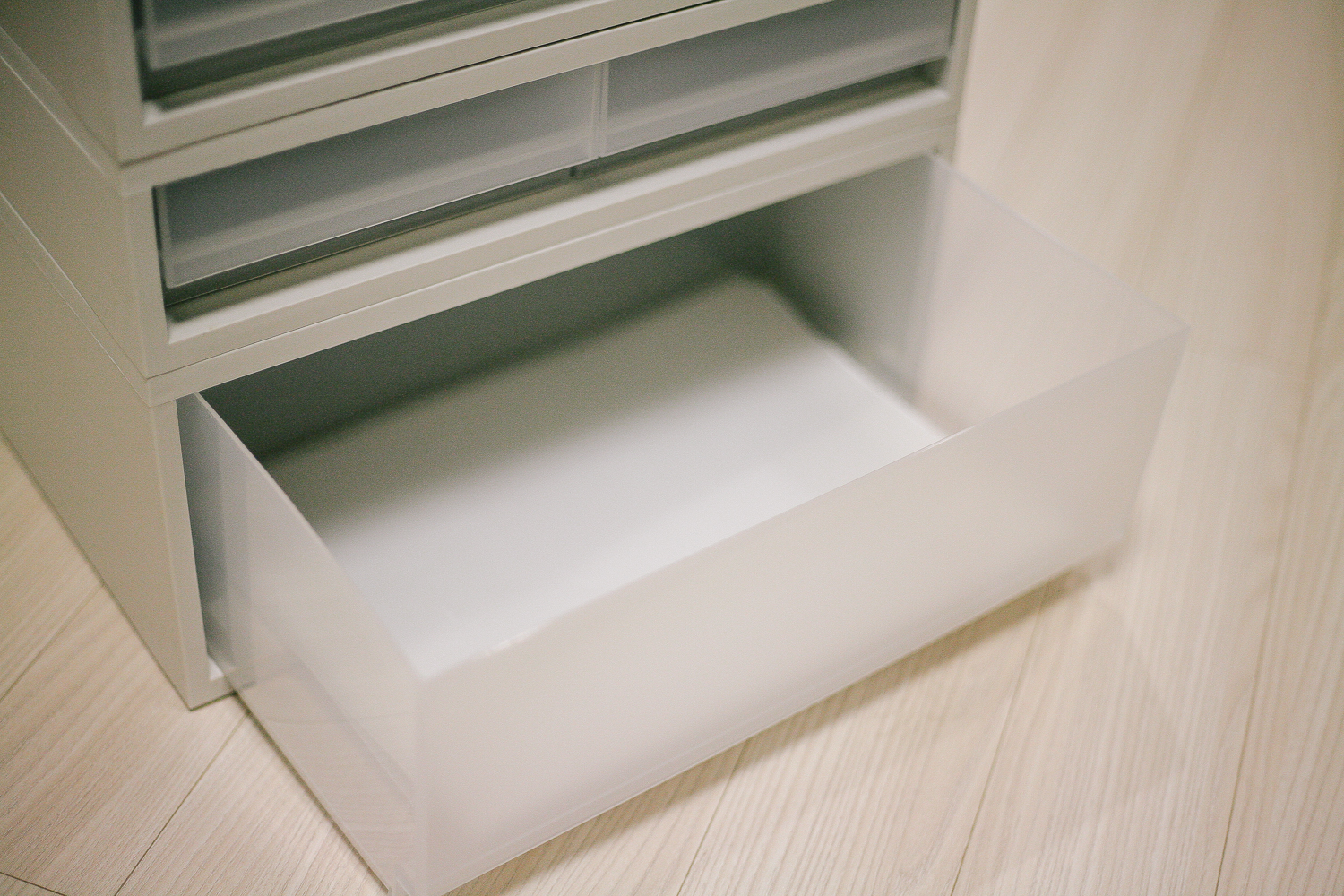 당연히 무레일 서랍이다 보니 확 잡아당기면 빠진다. 그러므로 과하게 힘 줄 필요가 없다.