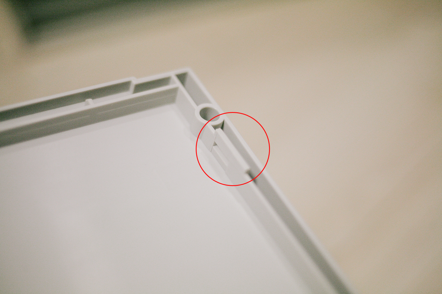 또 다른 장점은 데스크 정리함 상단, 하단부 각각에 홈과 돌기가 있는데 이것은 쌓아올릴때 서로 고정되어 일체감 있게 사용하기 위함이다. 그래서 다양하게 구성을 하여 홈에 맞게 쌓아 사용하면 마치 하나의 정리함 같은 효과를 줄 수 있다.