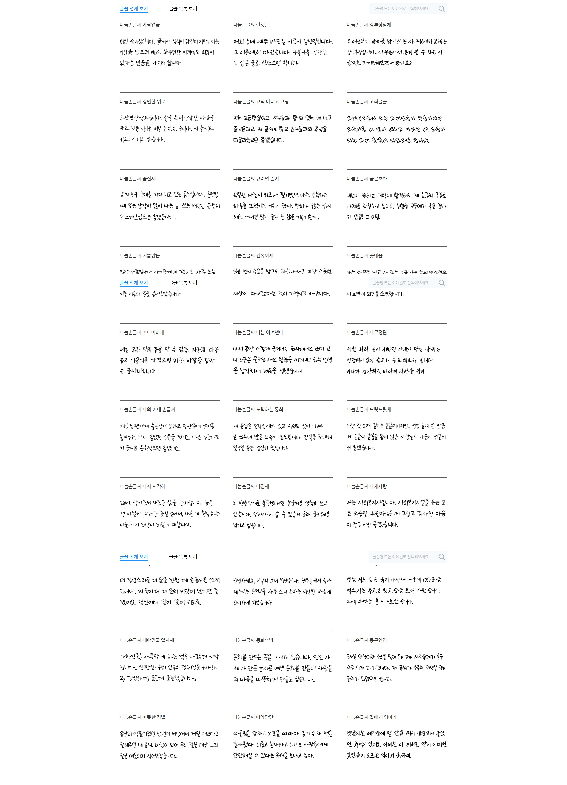 한글날을 맞이하여 네이버가 새로운 나눔손글씨 글꼴을 공개하였다. 이 글꼴은 다양한 분들의 사연을 통해 직접 보내준 손글씨와 AI가 만나 제작된 글꼴이라고 한다. 디자인 작업 시 다양한 글꼴을 활용할 수 있는 건 가장 큰 매리트인 것 같다.