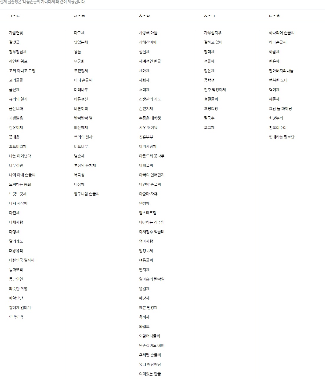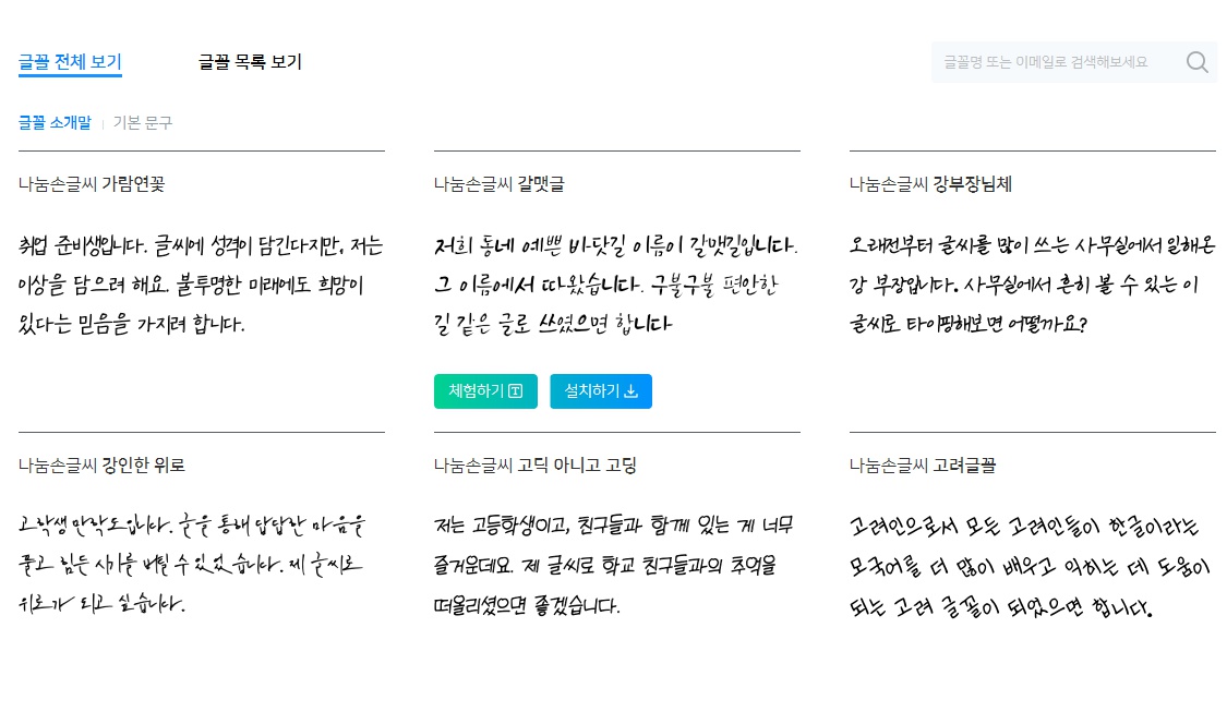 글꼴 전체보기 탭을 클릭했을때는 하단과 같이 글꼴 디자인이 직관적으로 보여 본인의 취향에 맞는 것을 볼 수 있다.