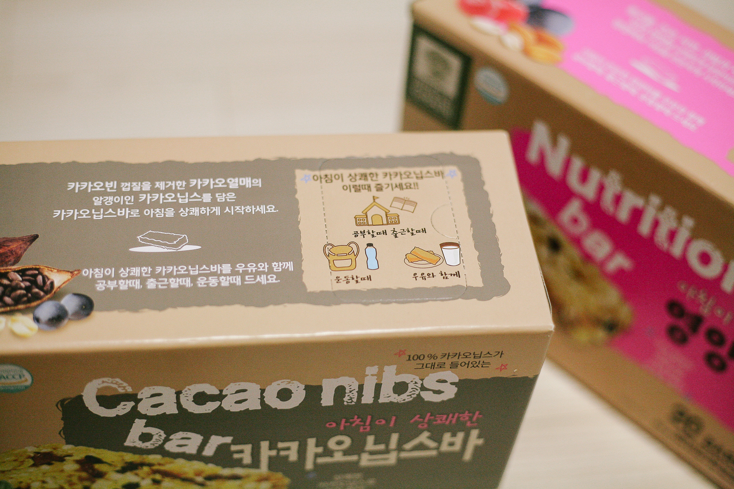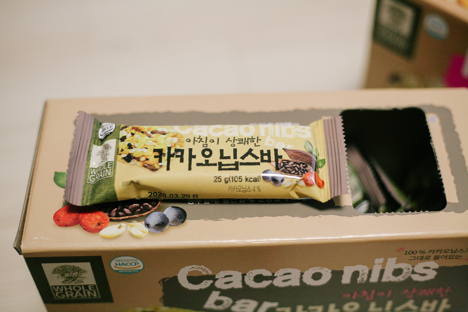 요즘 초콜릿 과자를 많이 먹어서인지 피부 트러블이 많이 나고 있다. 살도 잘 안 빠지는 것 같아서 건강한 간식을 위해 찾던 중 견과류 영양바를 찾게 되었다. 바로 엄마사랑 카카오 닙스 바, 영양 바이다.