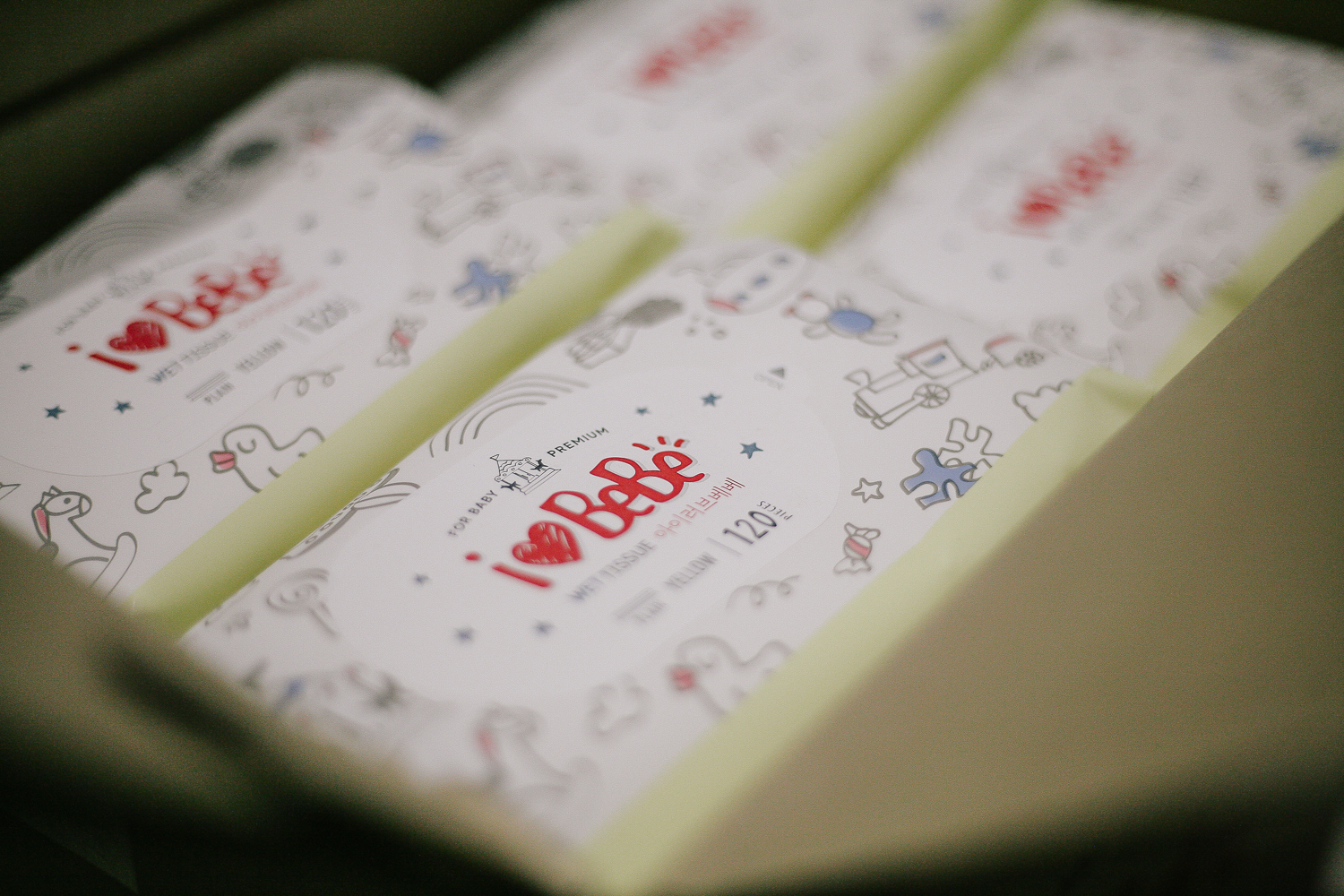 택배박스 자체가 아예 아이 러브베베 물티슈 인쇄가 적용되어 있다. 옵션에는 16가지의 아이러브베베 시리즈 물티슈가 있었고, 어차피 나는 간편 청소 용도로 사용하기 때문에 중간 가격대 옵션으로 구매하였다.