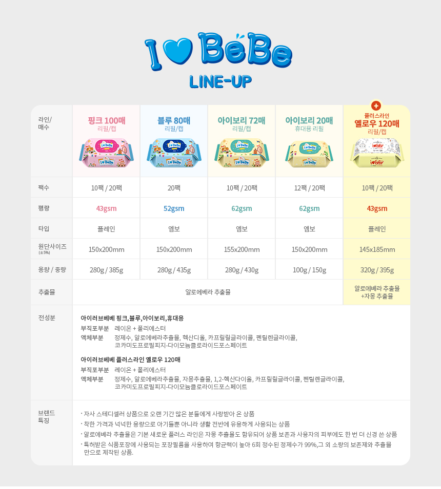 용량은 20% 플러스되고, 가격은 용량 대비 10% 낮춘 자몽 추출물이 첨가된 새로운 아이 러브베베 옐로 120매 물티슈이다. 직관적으로 딱 추천하는 신상품인 것! ㅎㅎ