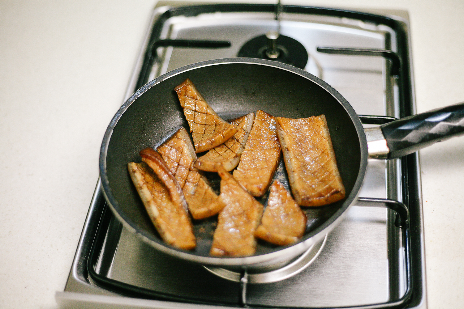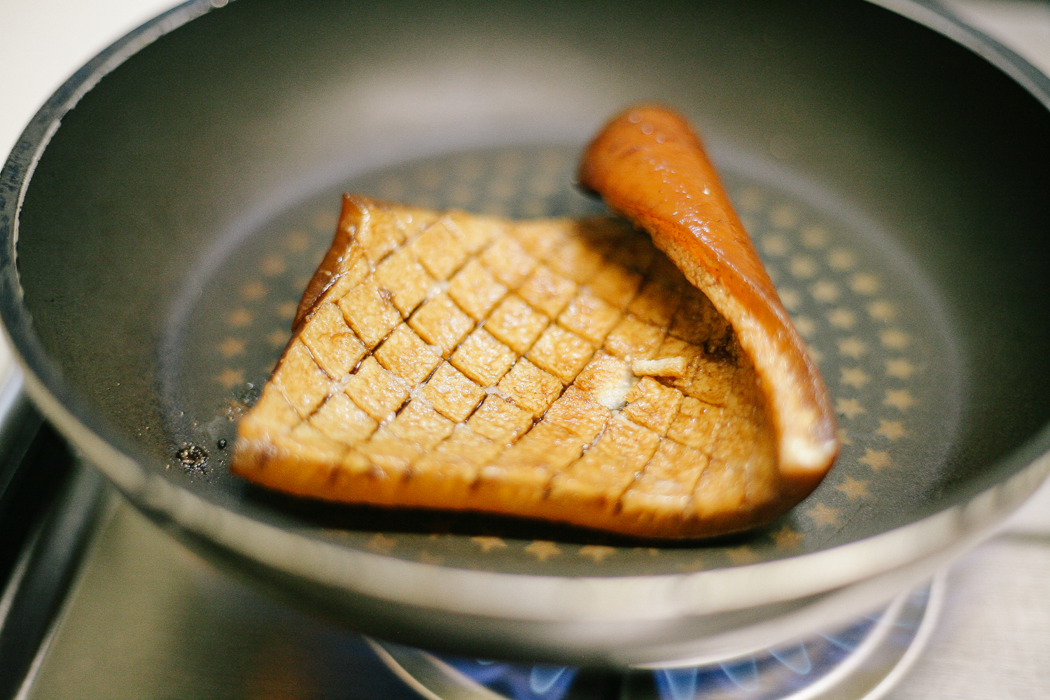 다 구워진 핫 부라더스 벌집돼지껍데기! 구울 때 기름이 과하게 생기지 않지만, 가끔 톡톡 기름이 튀기도 하니 조심하도록 하자. 본인은 약간 탄 느낌으로 구워진 느낌을 좋아해서 살짝 탄듯한 부분이 있다.